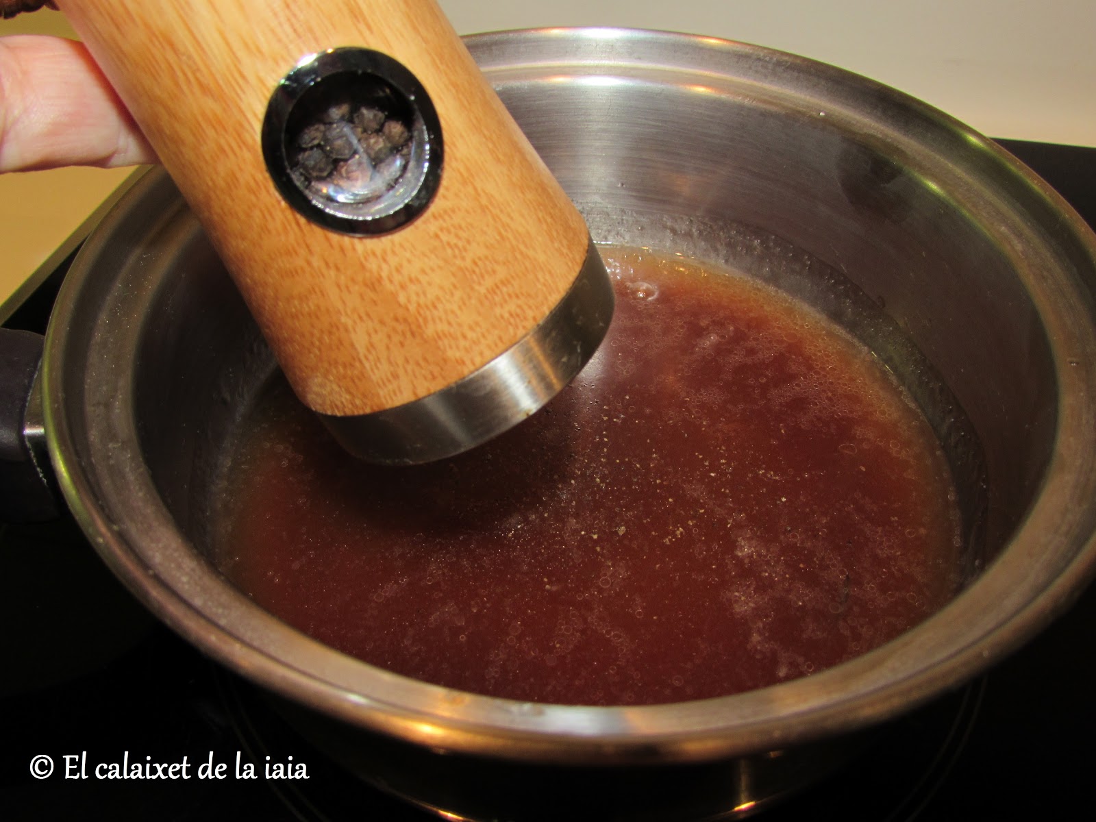 y un toque de pimienta negra recién molida, removeremos muy bien a fuego lento, mientras transcurren los 5 minutos de horno de la pieza que tenemos dentro