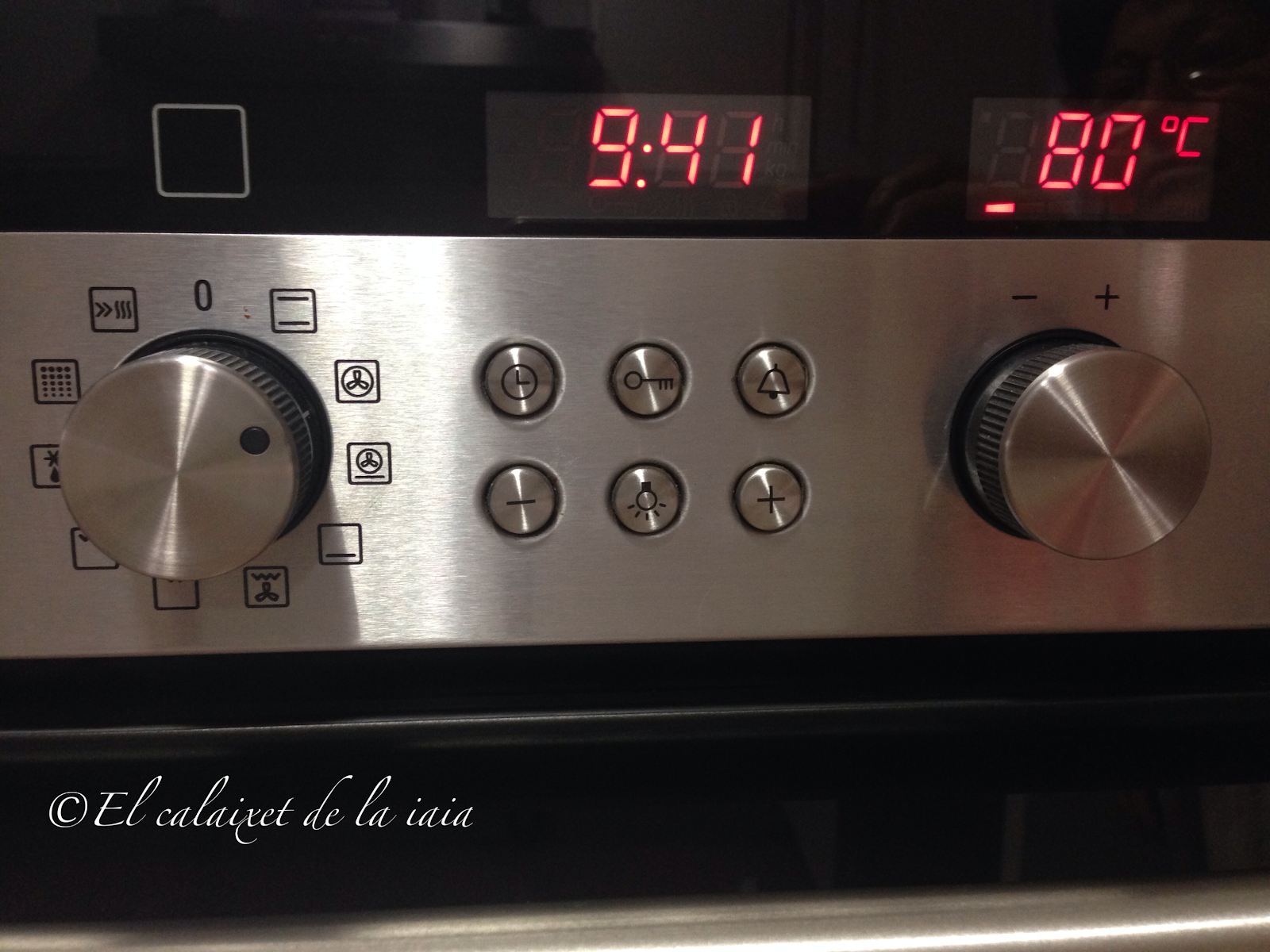 y tendremos un mínimo de 10 horas dentro del horno a 80º en modo ventilador únicamente. No hay que dar la vuelta, ni hacer absolutamente nada más.