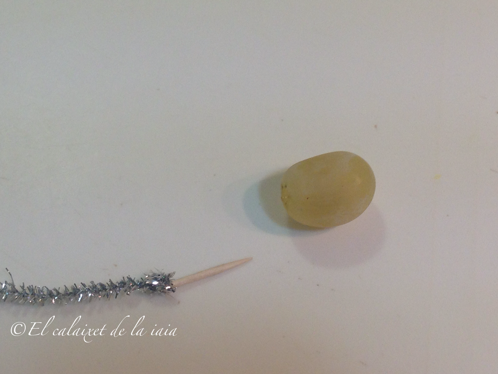Los limpiapipas los venden de todos colores y como se enrollan en el palillo no tocan el interior del grano de uva, la higiene ante todo 😉