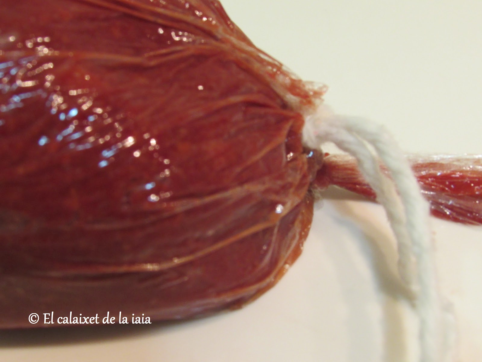 y meteremos el cordón hasta el nudo. Dejaremos el salchichón en el frigo para que se endurezca, suelo dejarlo toda la noche