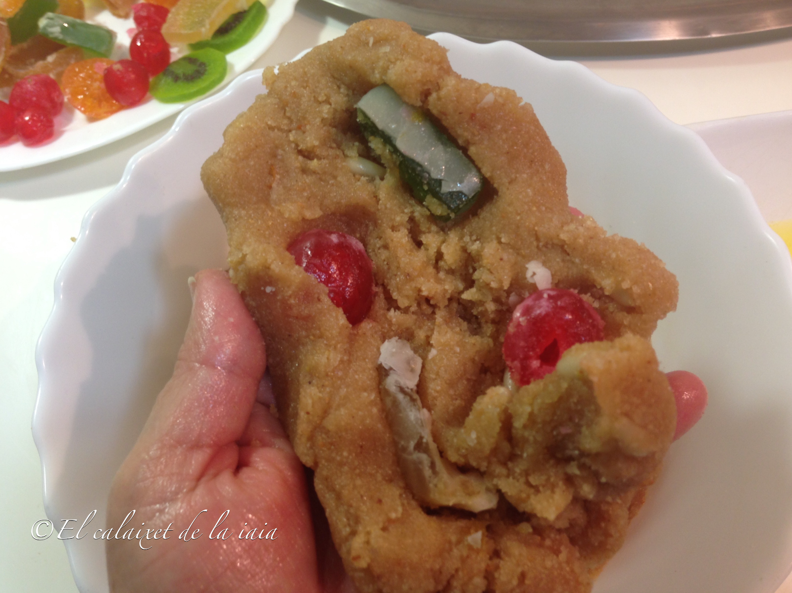 Edito esta entrada para contaros que a raíz de hacer esta publicación he podido saber que en Picassent, se hace esta mismísima receta, incluso con el ingrediente secreto y que en Cullera se hace también, pero sin las frutas confitadas. Para mi, es muy interesante conocer estas cosas. Siempre pienso que la gastronomía, tiene las mismas bases en muchos platos y en casi todos sitios es muy similar. En cada región, pueblo, barrio y casa, se ponía, se cambiaba o quitaba ingredientes, en función de lo que tenían a mano, se podían permitir, estuviese de temporada, o a su gusto.