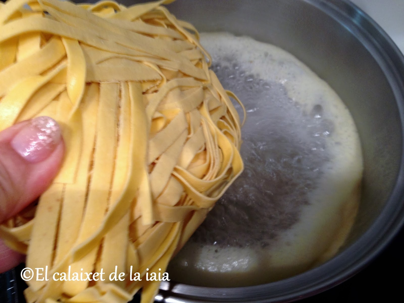 en agua hierviendo, ponemos la pasta fresca durante tres minutos