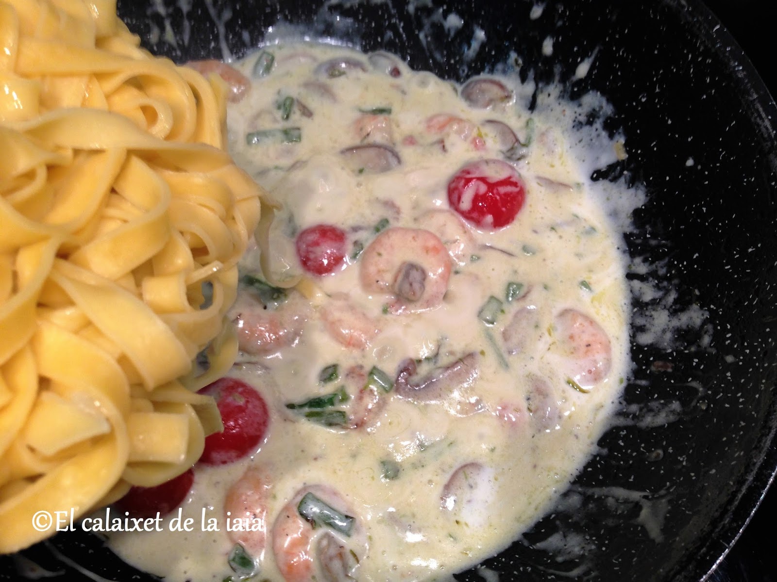 Receta de un plato riquísimo tanto caliente como tibio. He preparado unas cintas de pasta fresca con gambas peladas y espárragos trigueros, que ha resultado un plato muy bueno.