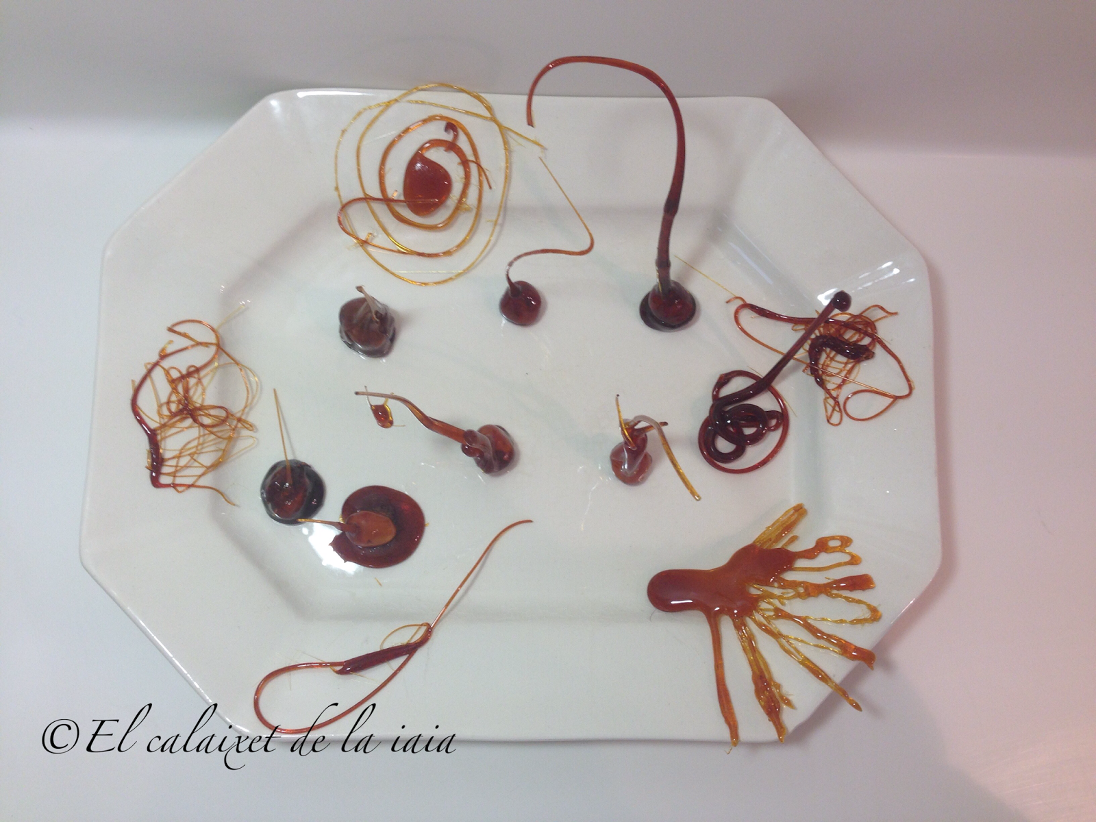 Hay muchas maneras de hacer adornos de caramelo, aprovechando que preparé unos para un «parfait individual de turrón y almendras crocanti» que podéis ver pinchando aquí realicé unas fotos de una de ellas, para que veáis que fácil es.