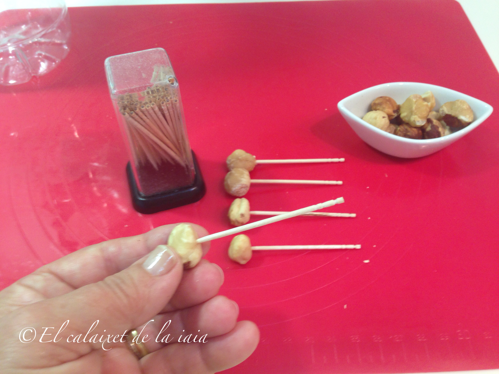pincharemos con un palillo algunas avellanas con cuidado de que no se nos rompan