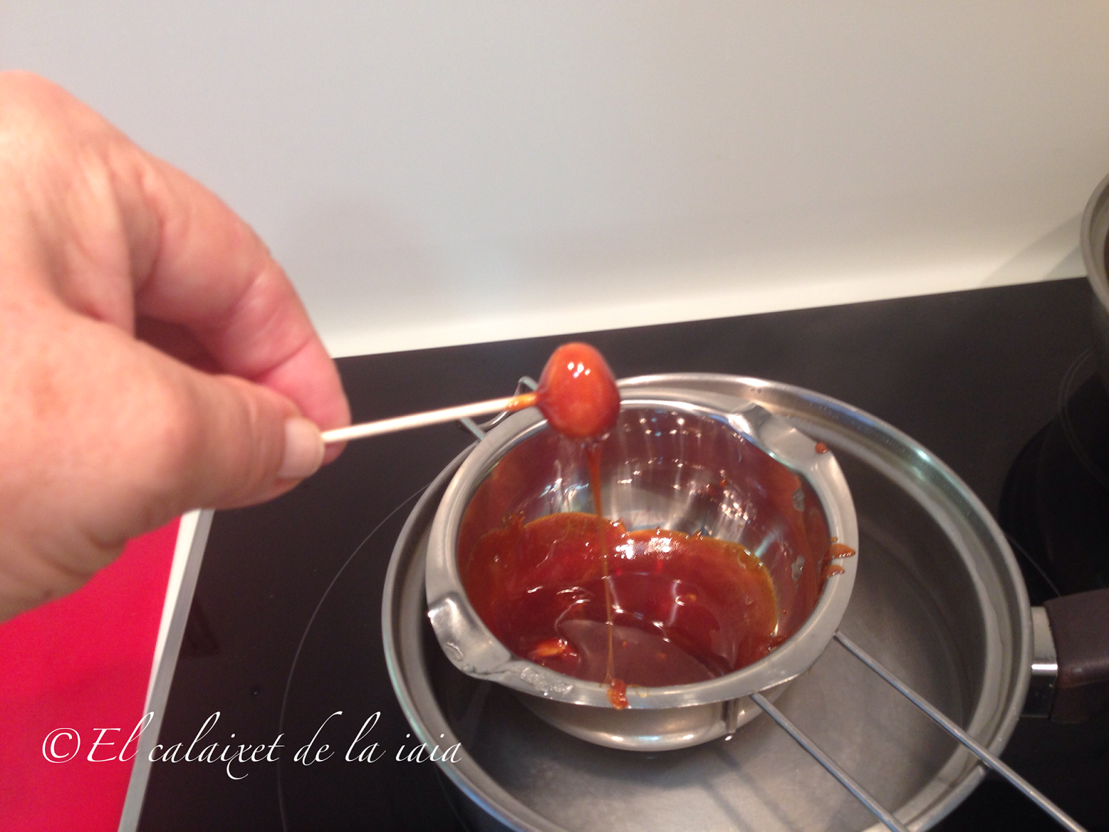 prepararemos un caramelo poniendo al fuego, azúcar y agua, el doble de azúcar que de agua hasta que tome el color adecuado