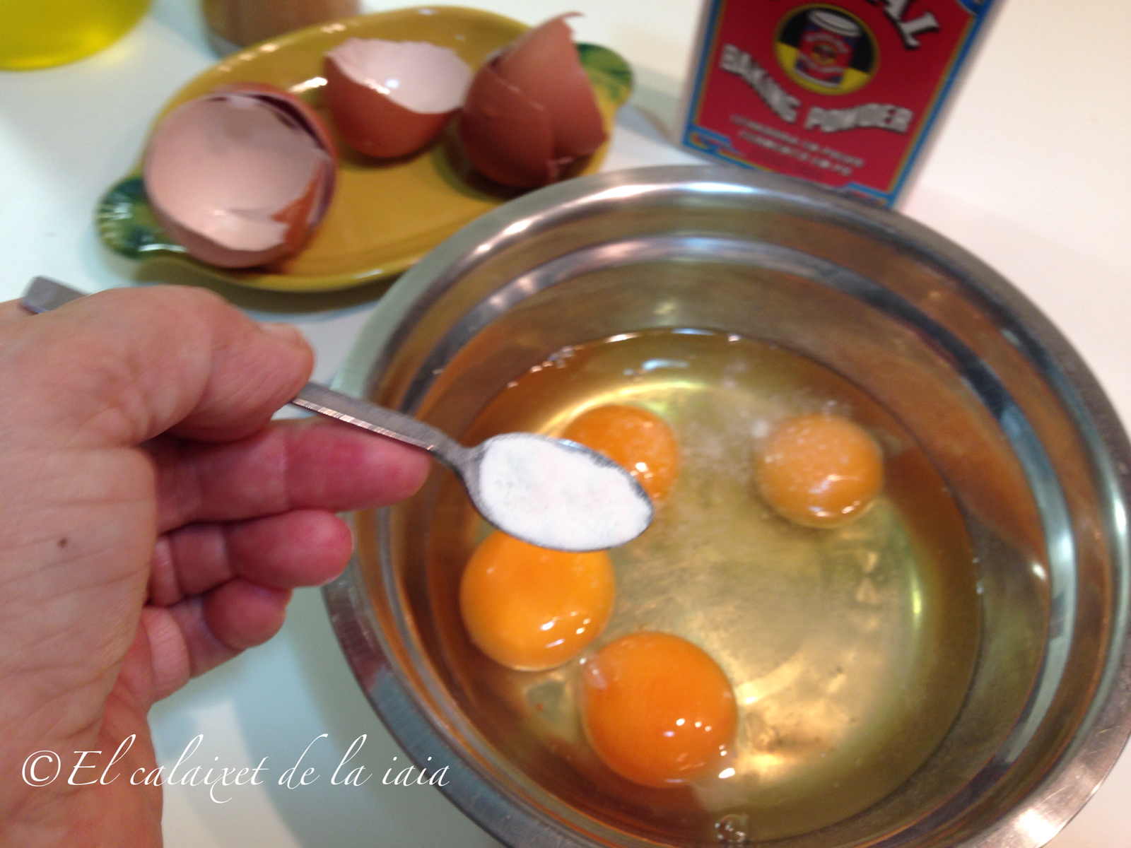 añadimos una pequeña cucharadita rasa de café con levadura y batimos
