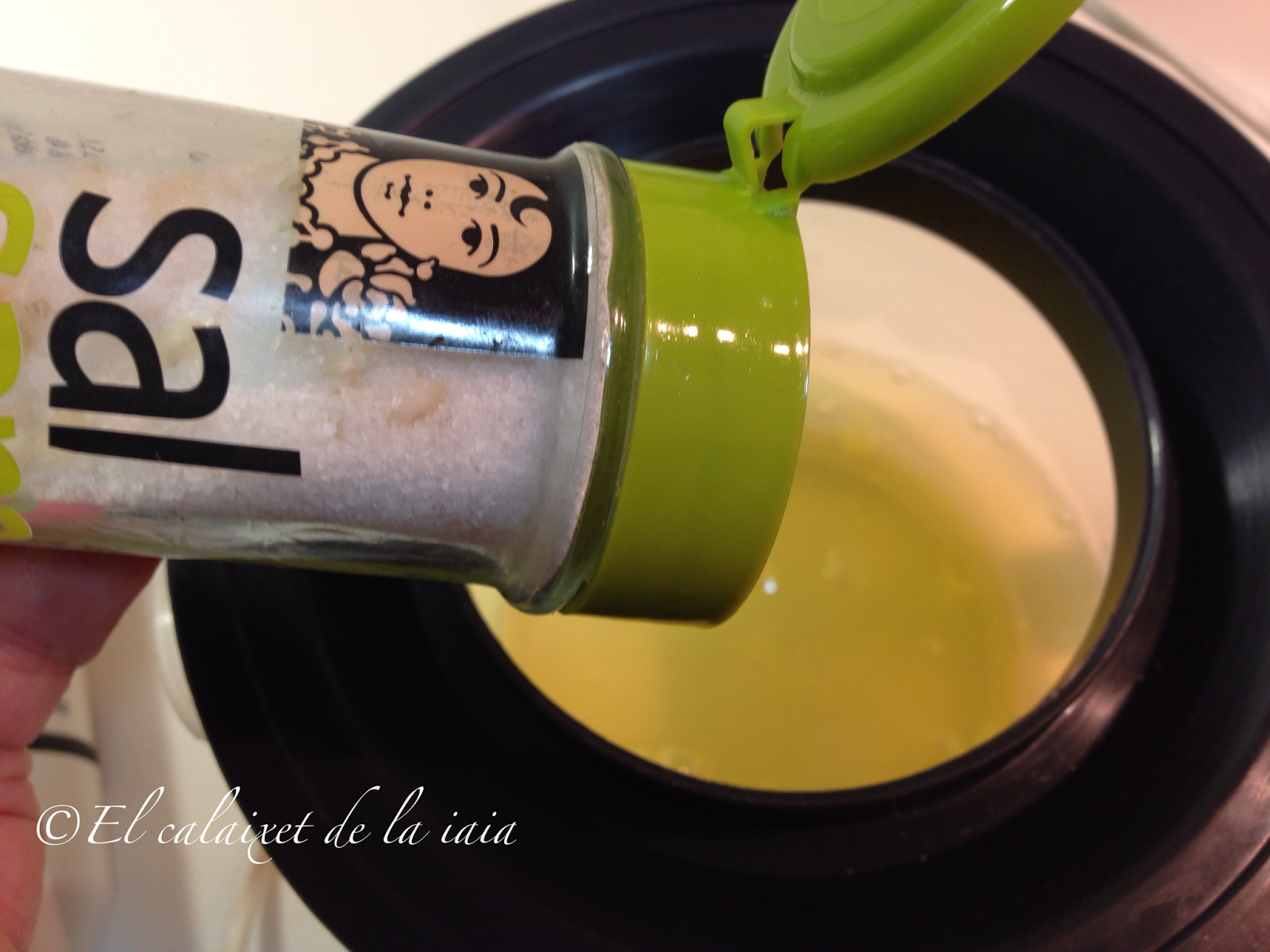 Montamos las claras a punto de nieve, añadiendo una pizca de sal
