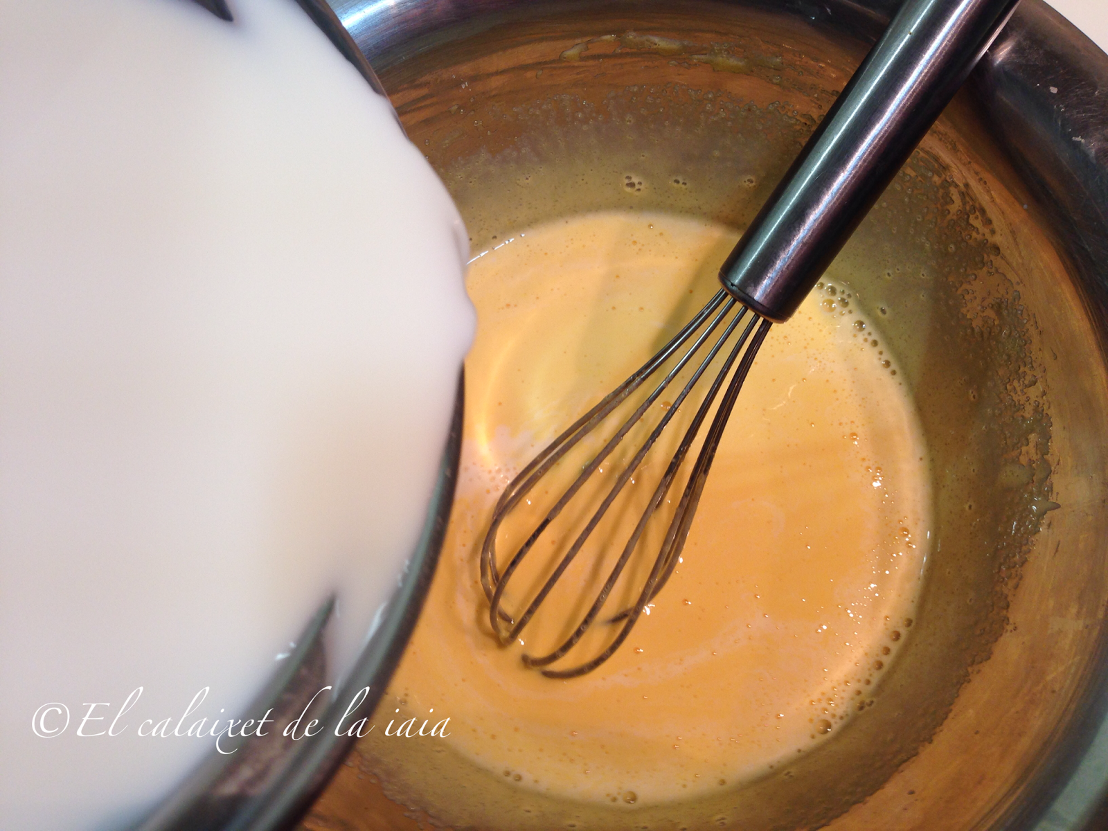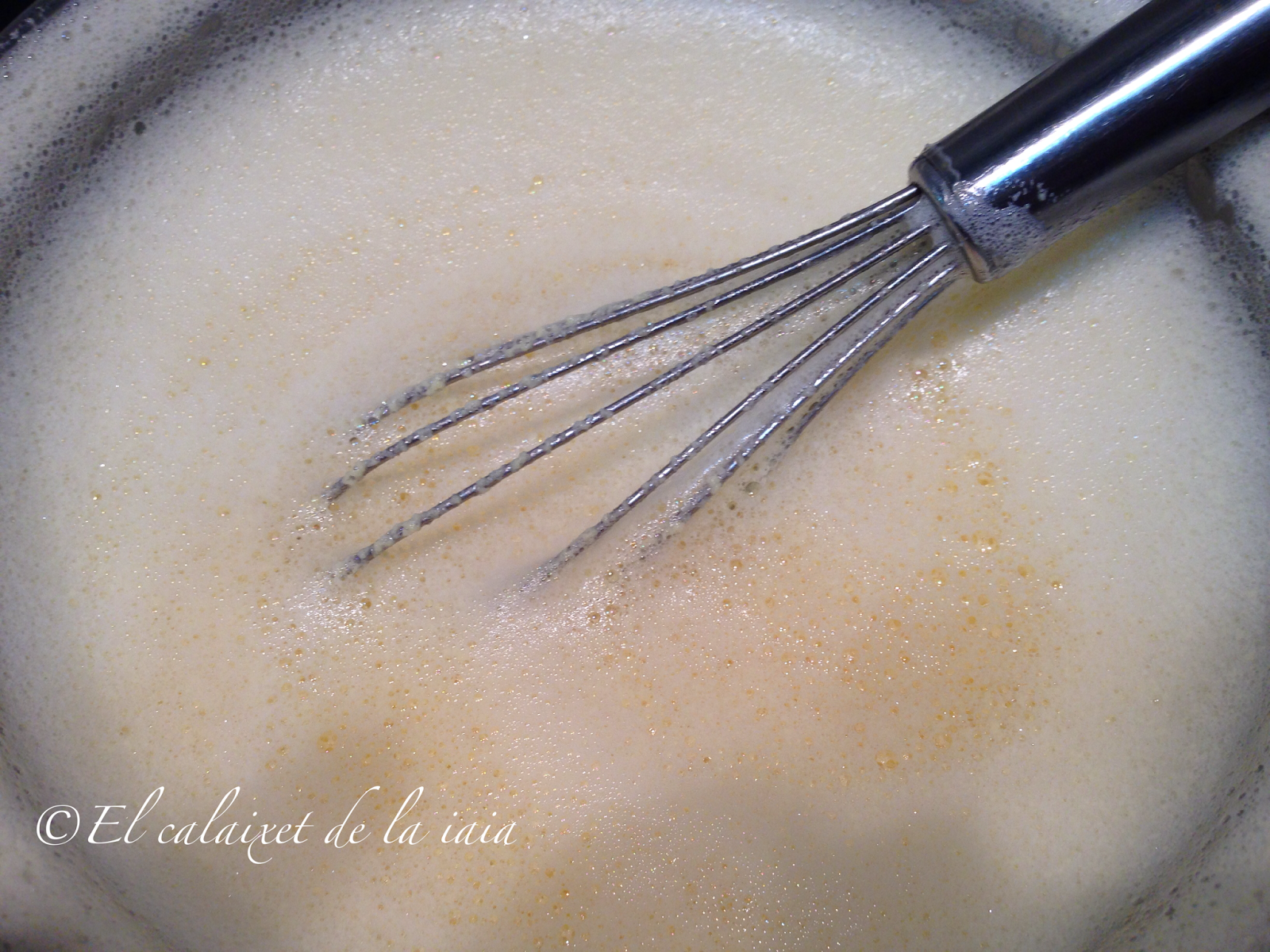 e incorporaremos la mezcla a la leche que está en el cazo al fuego