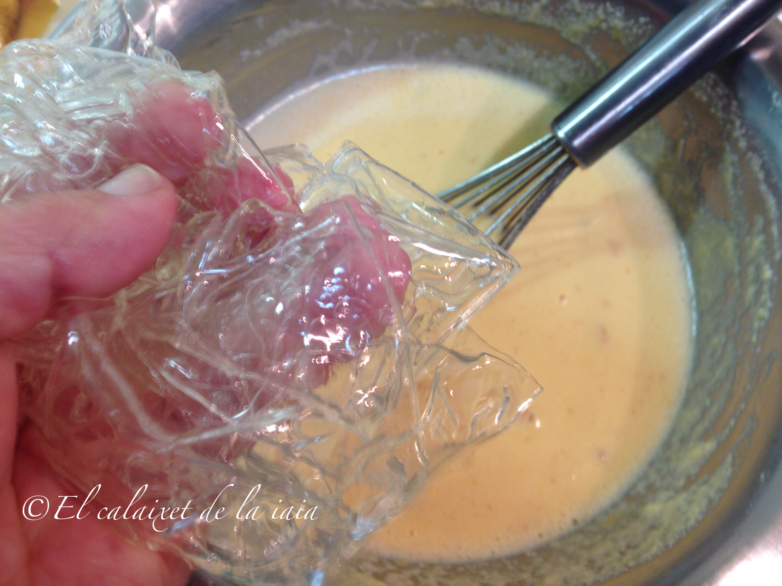 incorporamos la gelatina previamente hidratada y muy bien escurrida y seguimos removiendo