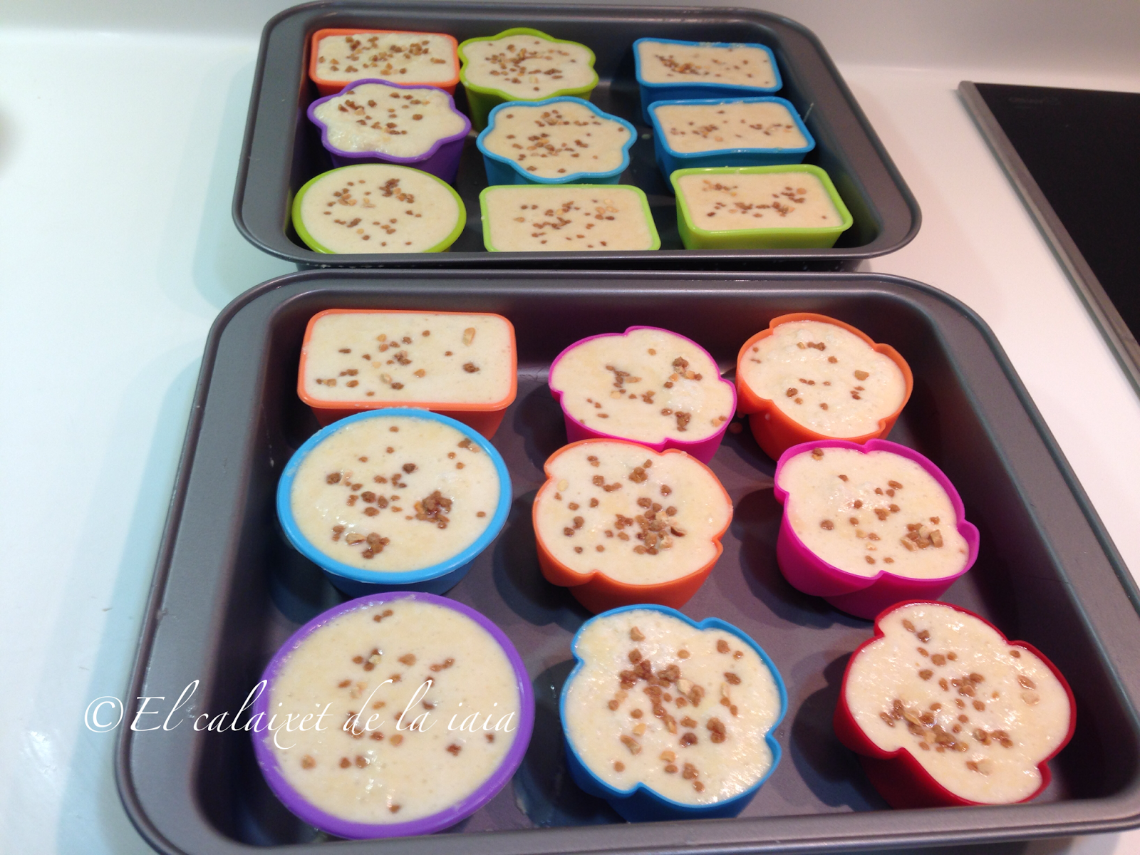 Con estos ingredientes he tenido para llenar dieciocho moldecitos de 80ml, que pienso será más que suficiente para postre de las grandes comidas y cenas de éstos días,pero si lo veis escaso, podéis hacerlo en moldes más grandes, o poner de base una galleta de bizcocho fino, como en la foto de arriba, aunque tened en cuenta que luego, entre polvorones y mazapanes…..