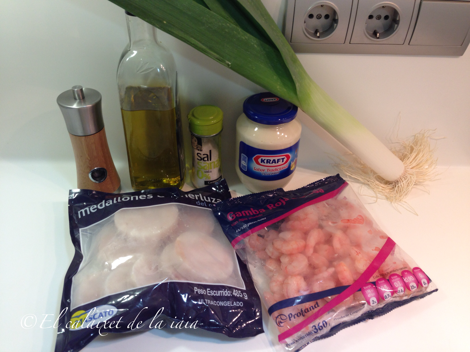Una bolsa con 10 medallones cuestan 3,25€, y la bolsa de gamba roja pelada (lo suficiente para los 10 medallones) 4,50€, un puerro 70cm. para que os hagáis una idea de lo que os puede costar, si os apetece como segundo plato, ya veis…..