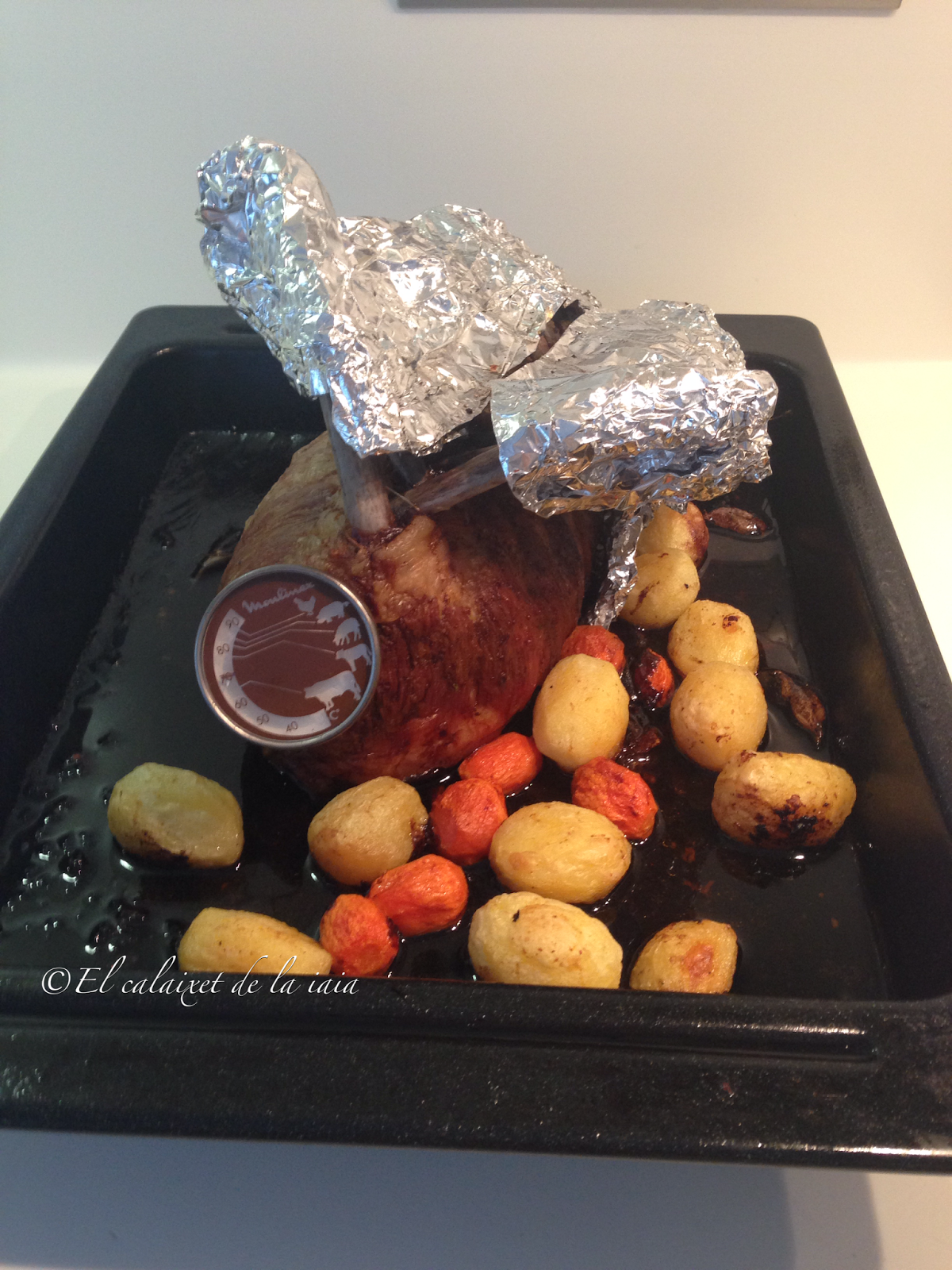 y al horno a 180º, durante dos horas, abriendo cada media para regar la carne con los jugos, si es preciso, podemos añadir medio vasito de agua caliente. Estos tiempos son en mi horno, controlad el vuestro, porque cada horno funciona distinto.