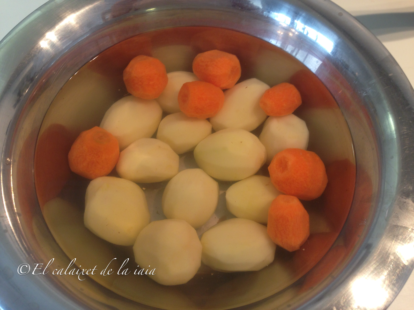 pelaremos las patatas y las zanahorias torneándolas un poco con el pelapatatas si queréis
