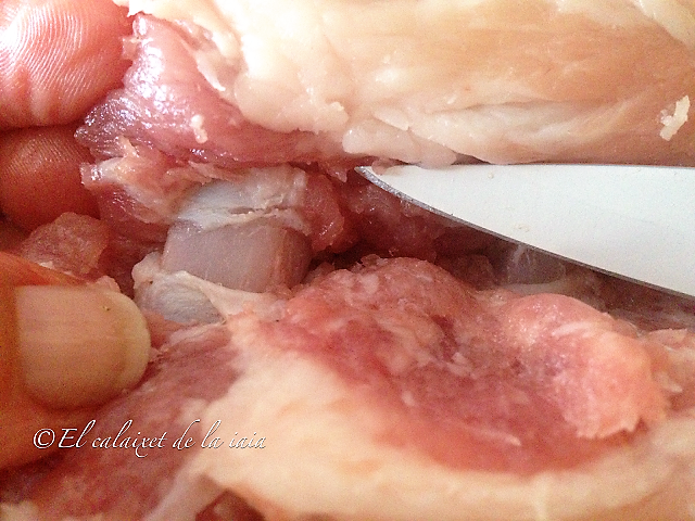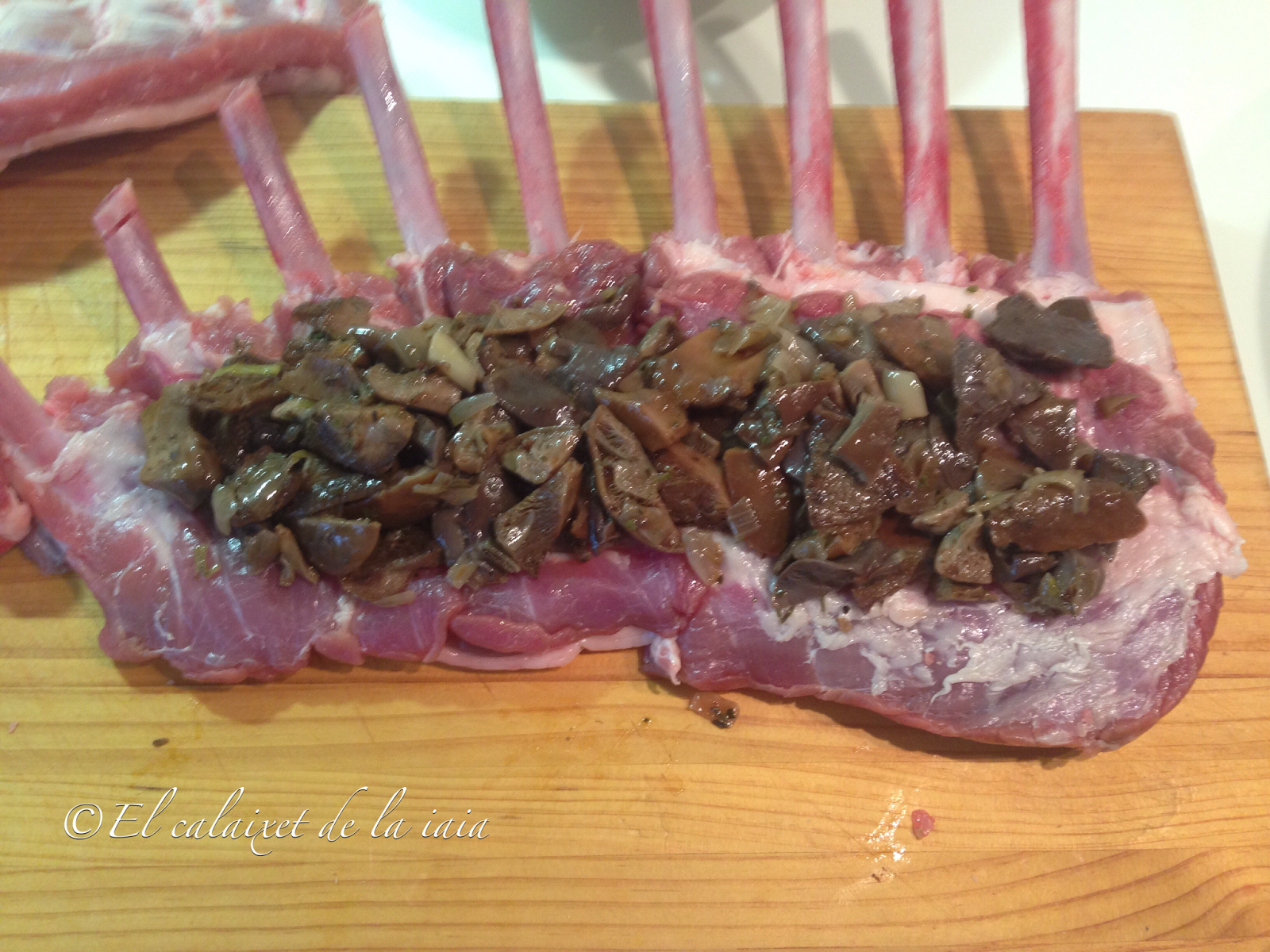 en medio costillar por la parte interna colocaremos la mezcla que hemos preparado, reservando las que hemos dejado enteras al igual que la mezcla que nos habrá sobrado y que utilizaremos al final para hacer la salsa
