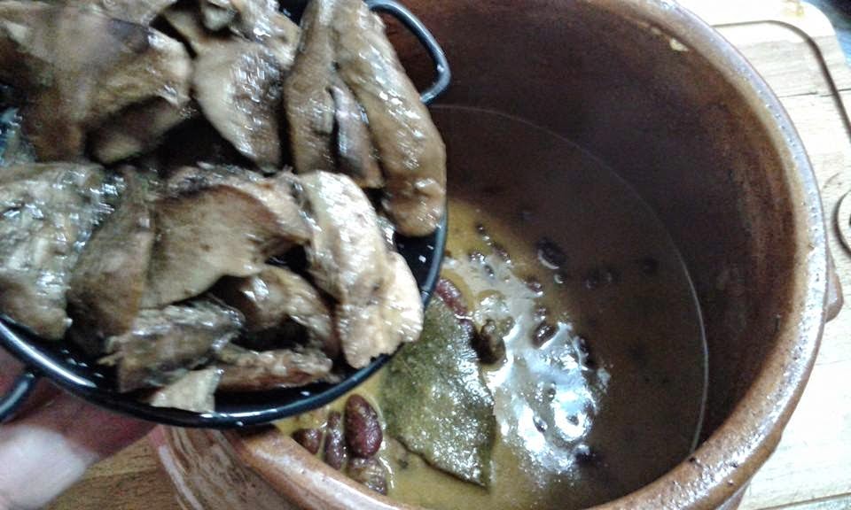 y removemos dando movimientos circulares a la olla con las manos, para evitar que se nos rompan las alubias