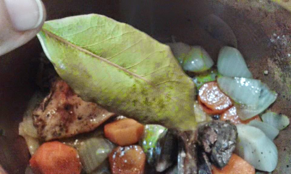 y cuando esté el sofrito listo, añadimos la hoja de laurel enjuagada