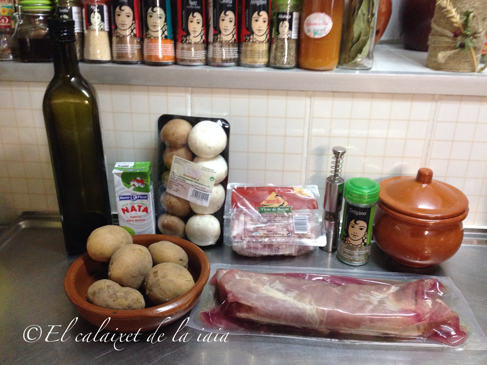 añadimos orégano al beicon con champiñones