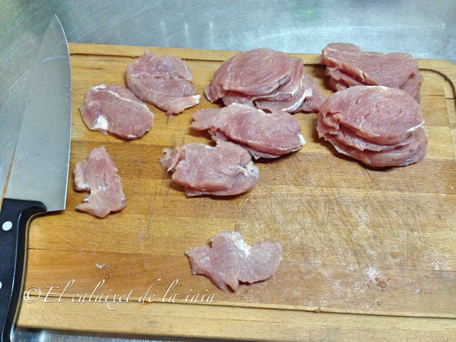 quitaremos el exceso de grasa de la pieza de solomillo y cortamos en medallones
