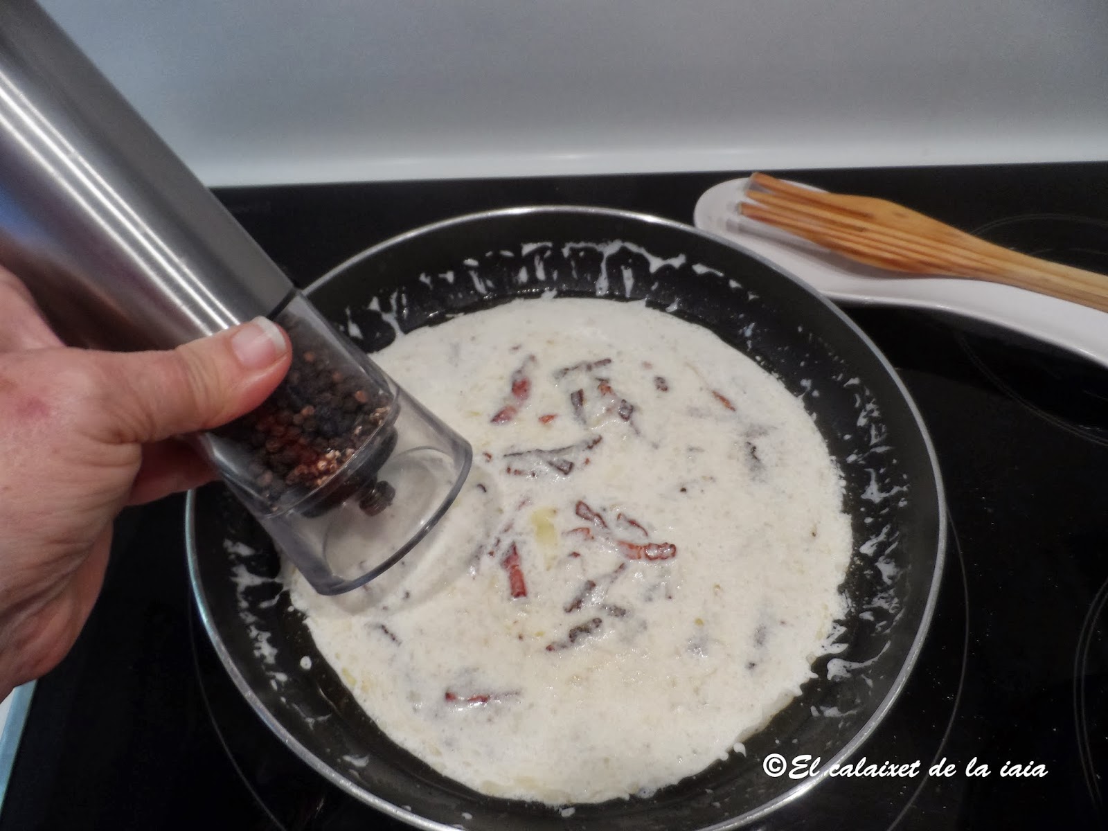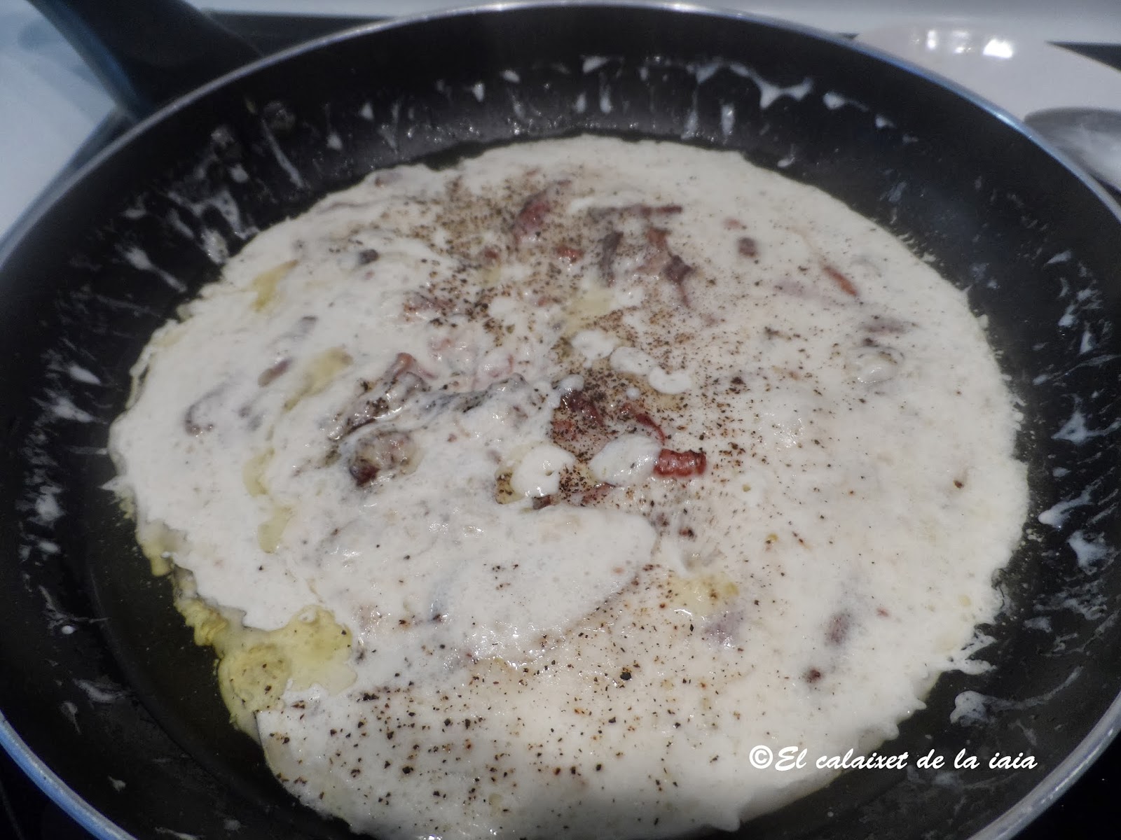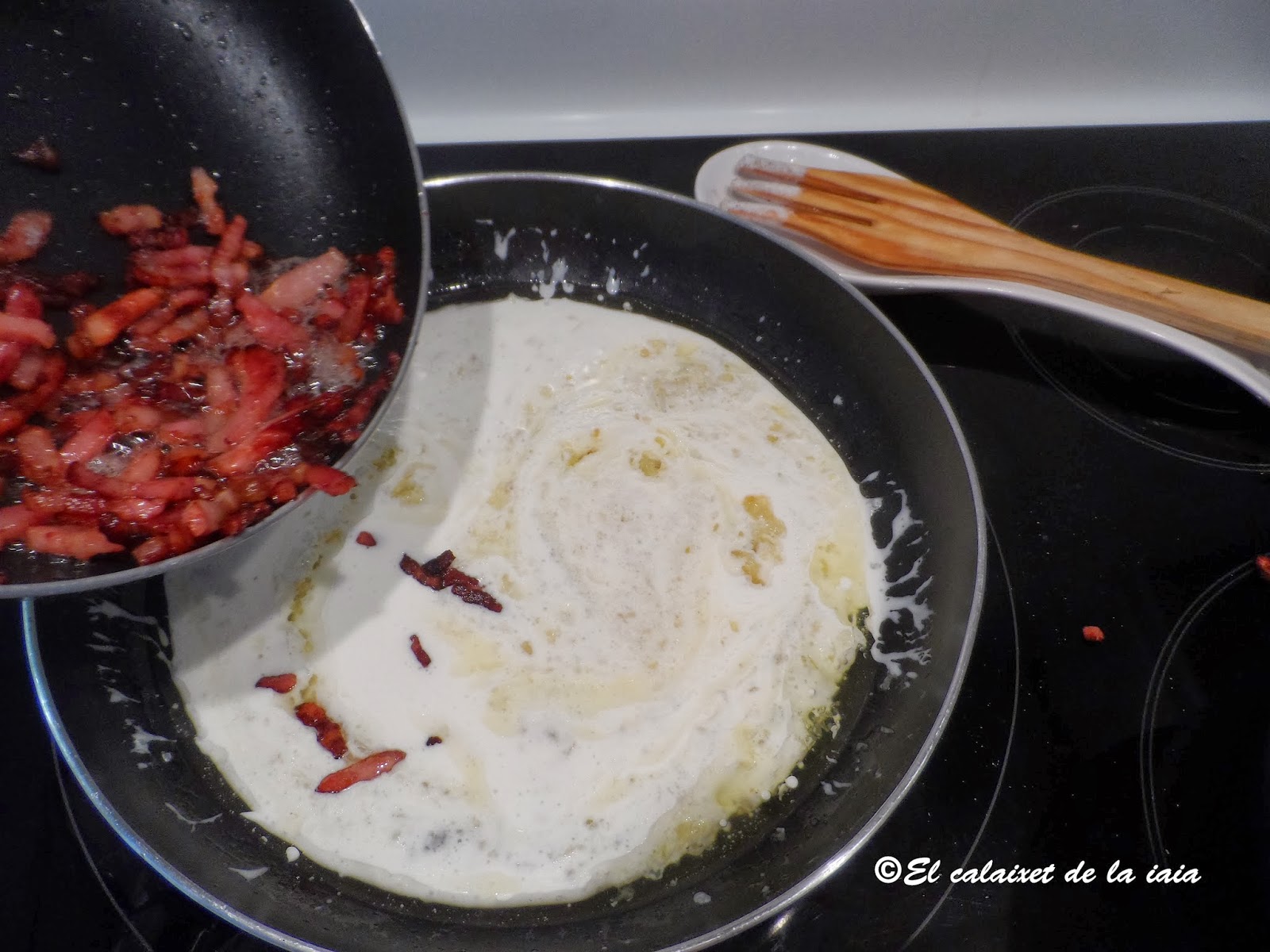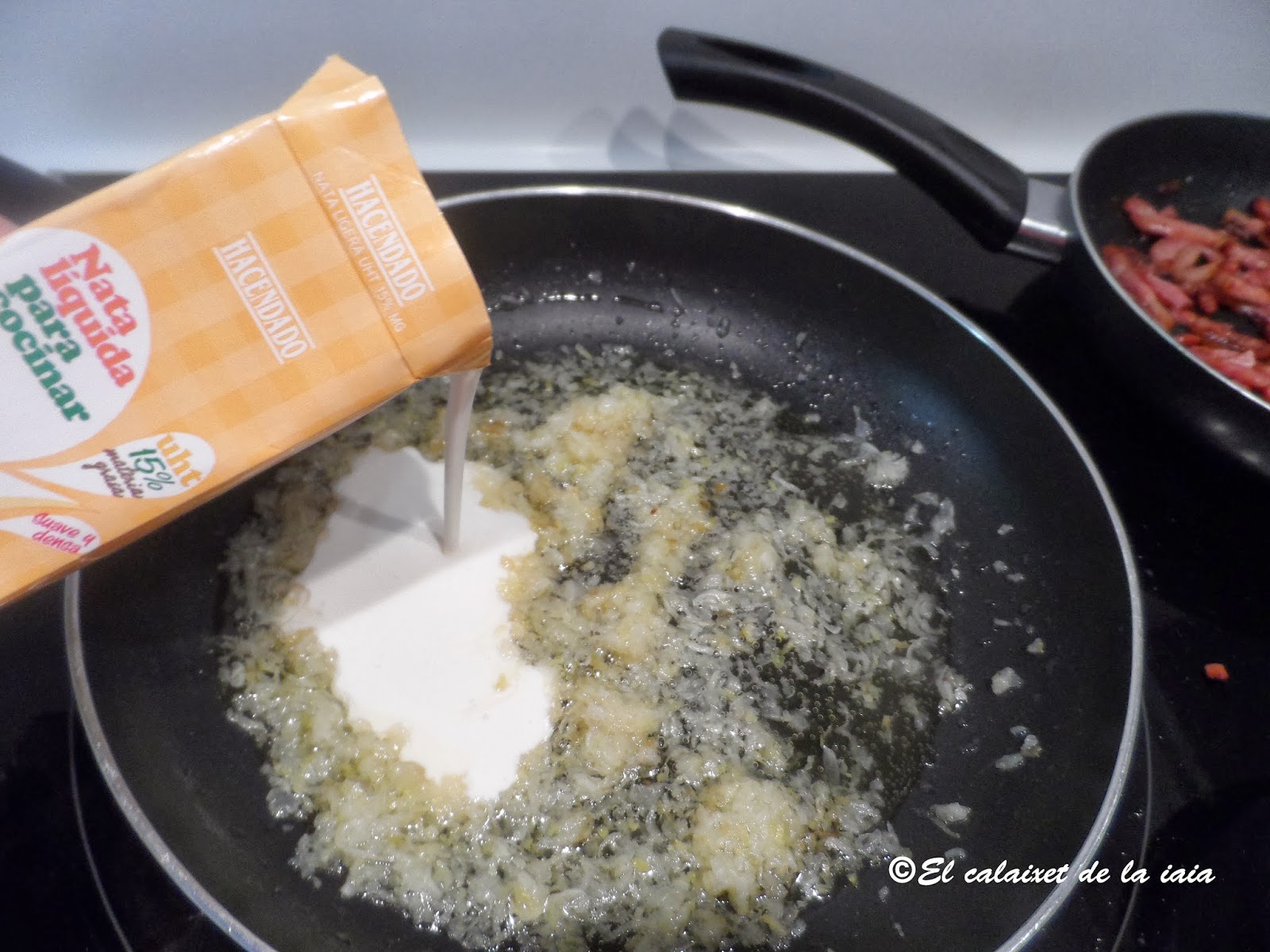 incorporamos la cebolla nata y beicon y servimos INMEDIATAMENTE.