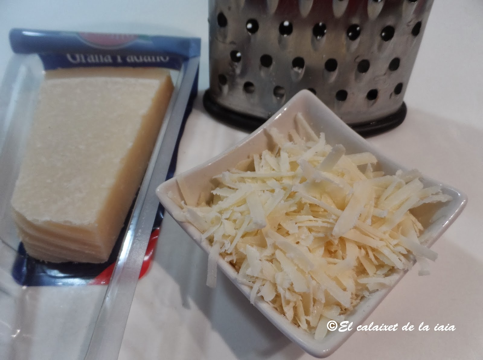 rallamos el Grana Padano en trozos grandes, que se note el queso.Parmigiano Reggiano y Grana Padano son muy similares, la tecnología de producción es casi idéntica, pero el Grana Padano tiene un precio muy asequible y para la cocina es perfecto, fuerte y con una textura granulada y con un ligero sabor a nuez, en casa gusta mucho