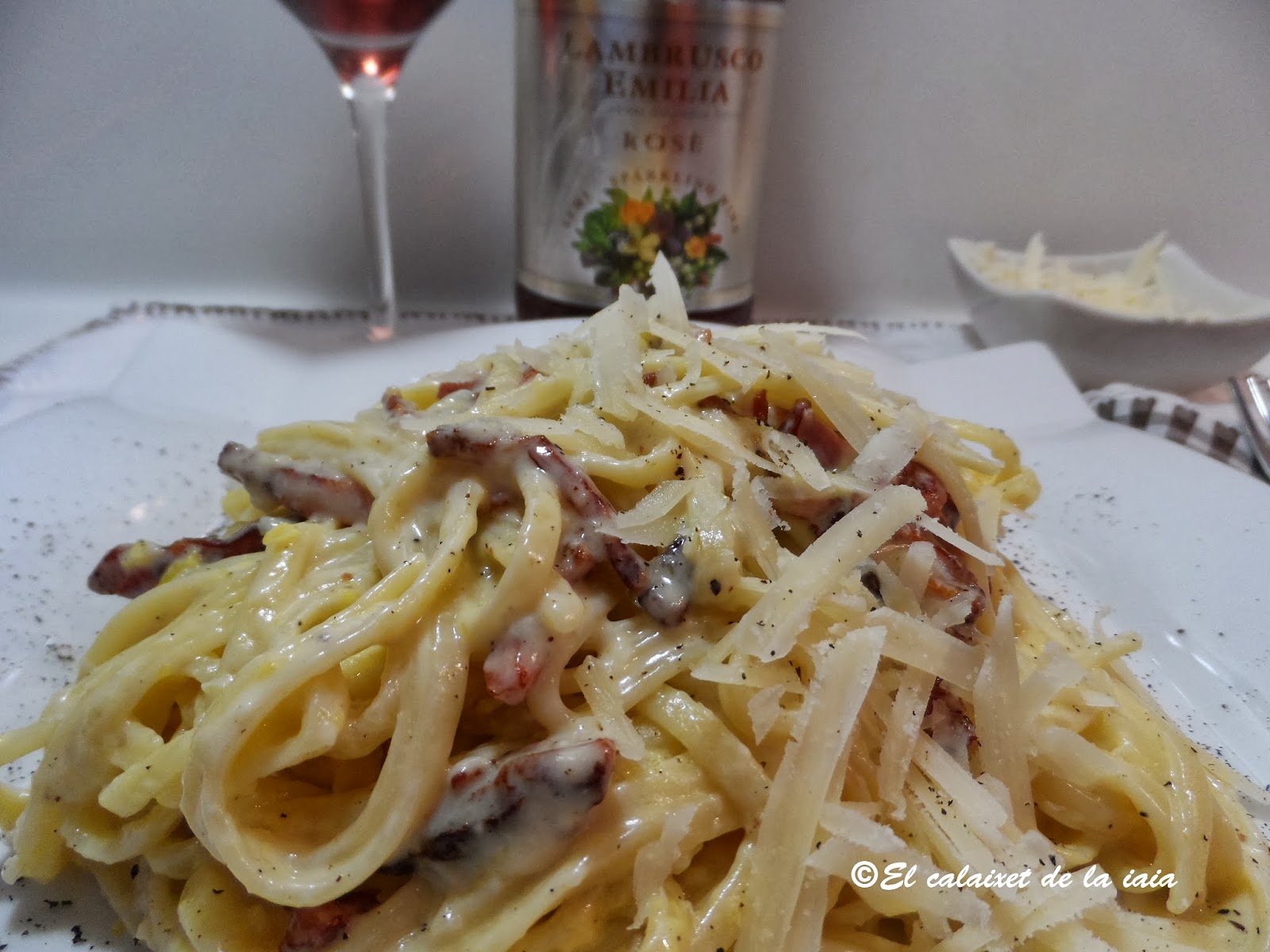 Si nos salimos de la pasta con salsa bolognesa ó de atún, la variante con salsa carbonara es la mas conocida, pero curiosamente los italianos la hacen SIN nata y SIN crema, por tanto lo que solemos llamar carbonara, ciertamente NO lo es.
