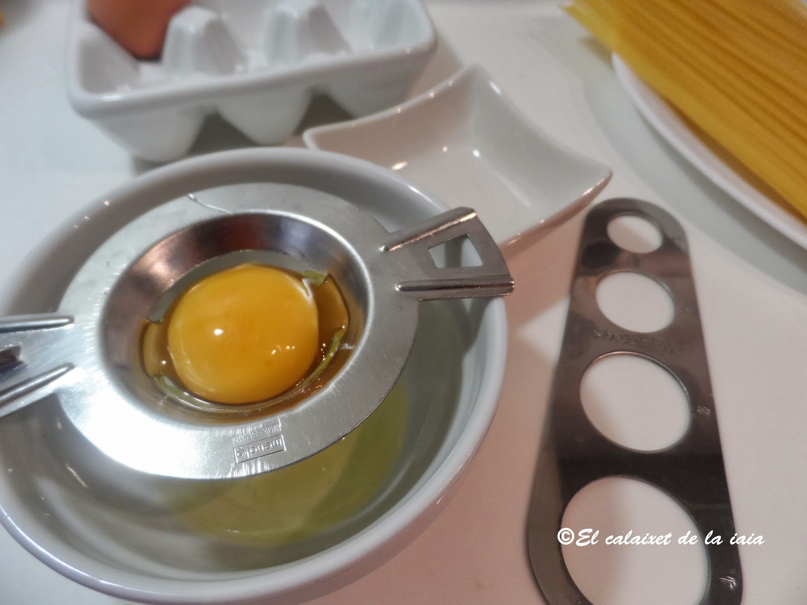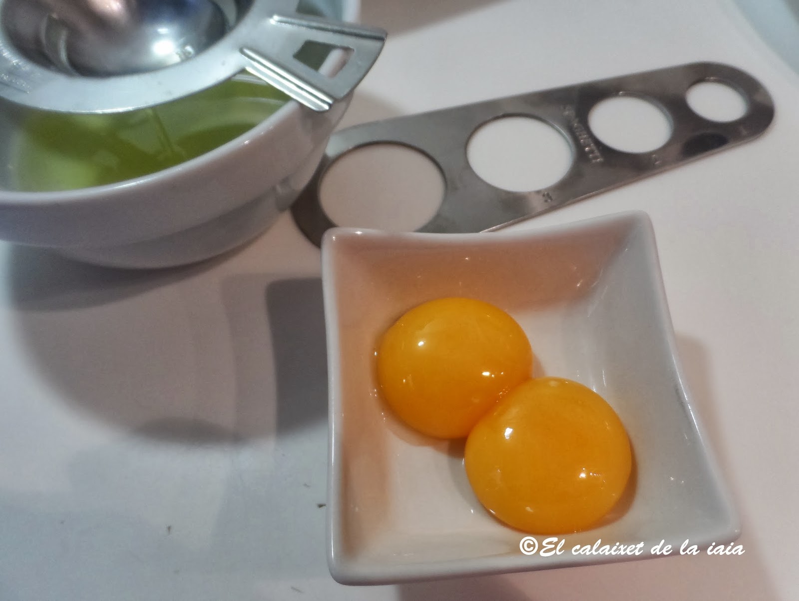 Quitamos la clara a dos huevos,(reservamos en un taper en el frigo,