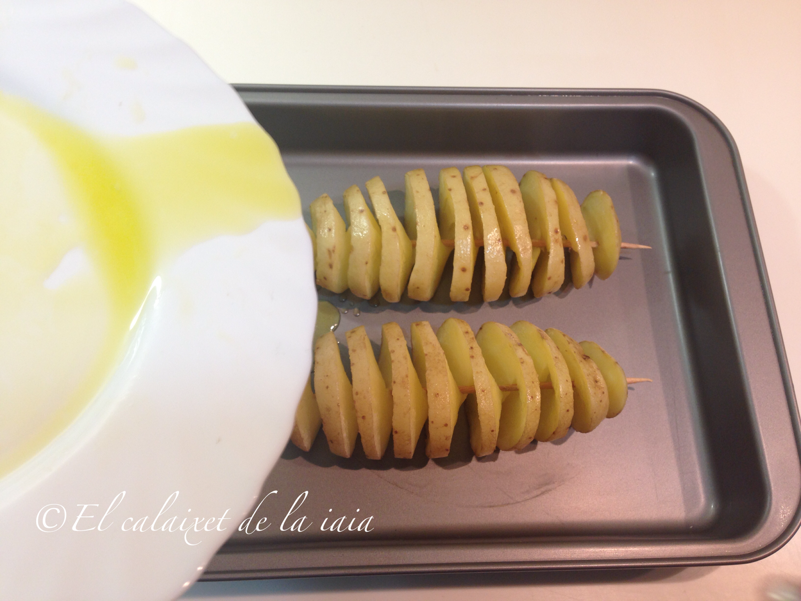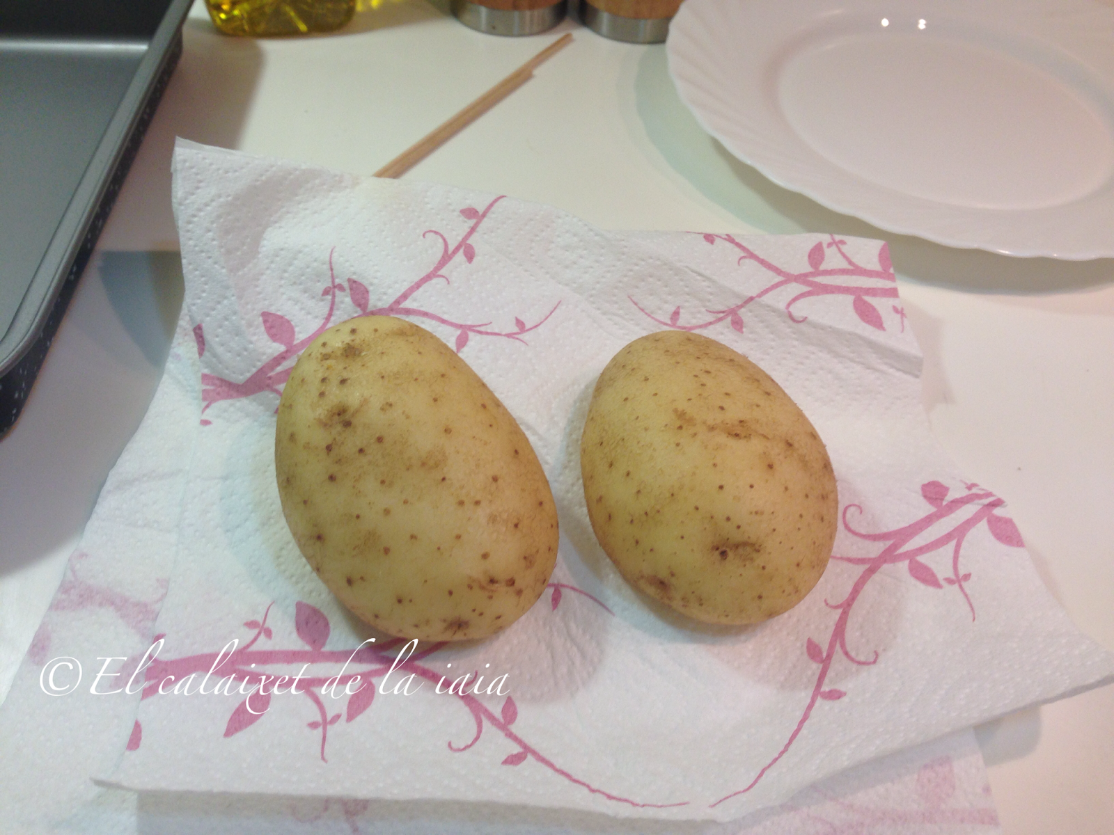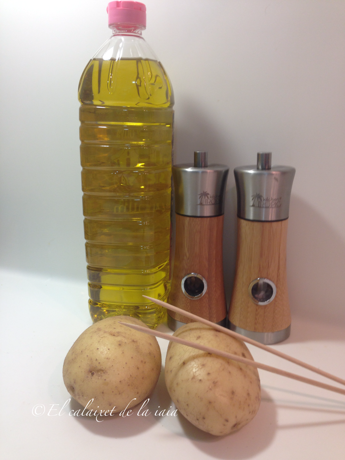 Éste tipo de patata se cocina frito, pero para aligerar un poco, yo he cambiado un poco la receta.