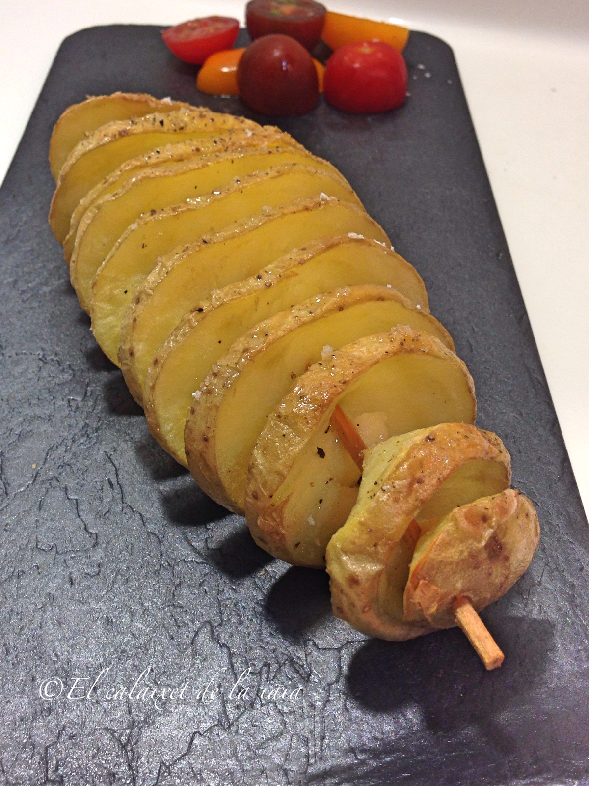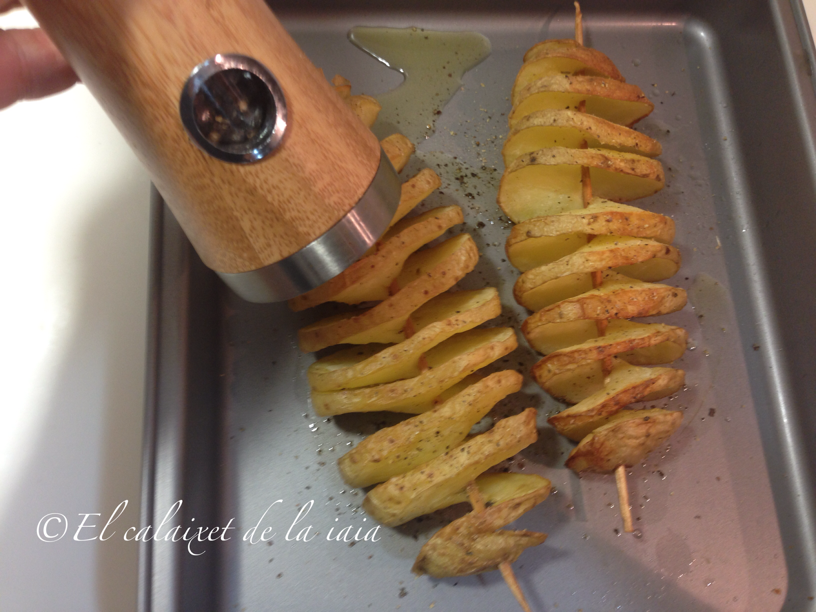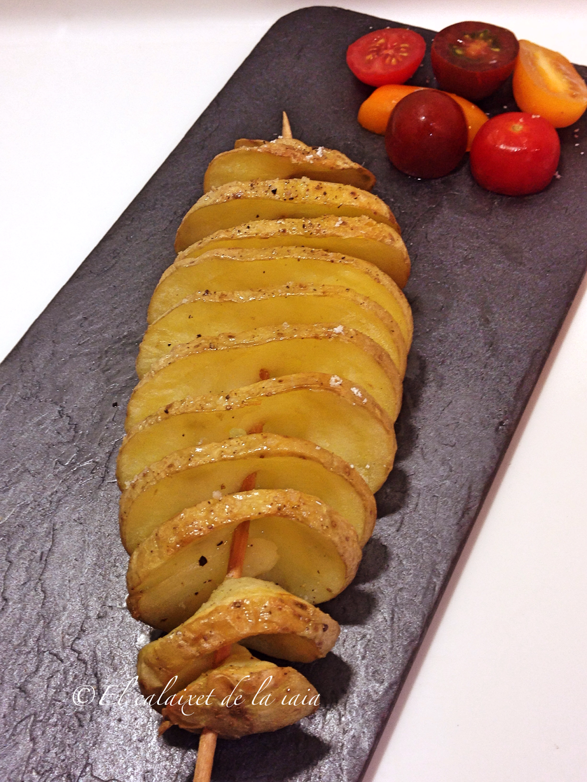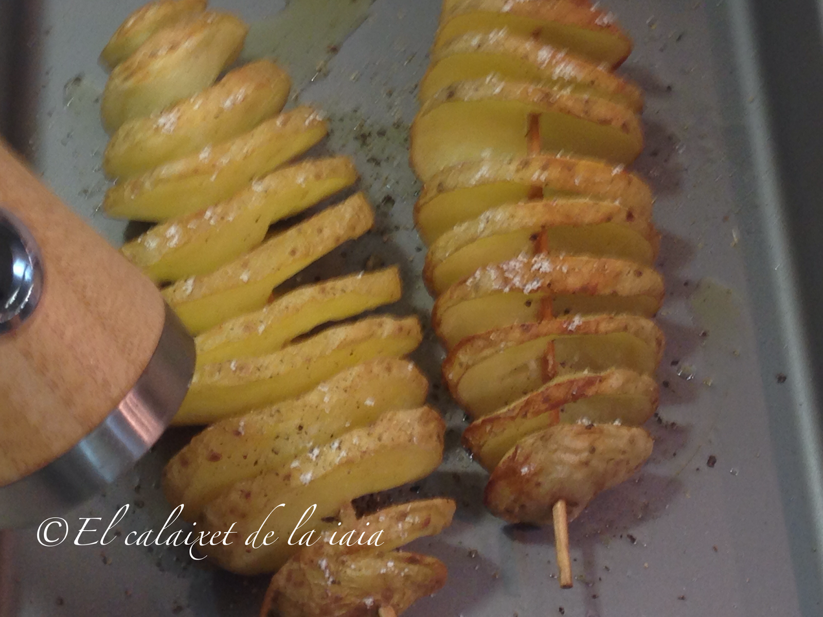 Éste tipo de patata se cocina frito, pero para aligerar un poco, yo he cambiado un poco la receta.