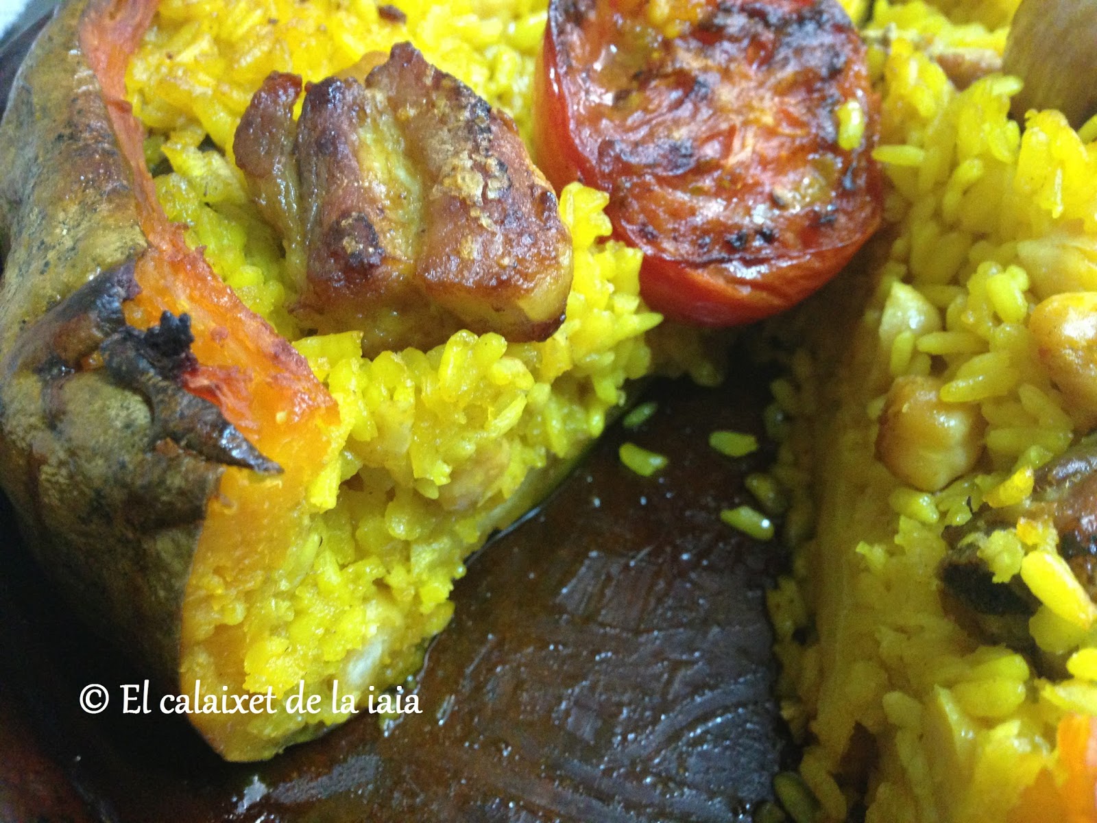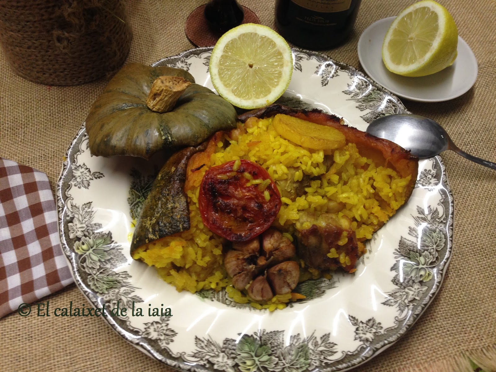 Arròs i carabassa amb poc n’hi ha massa» Arroz i calabaza, con poco hay demasiado.