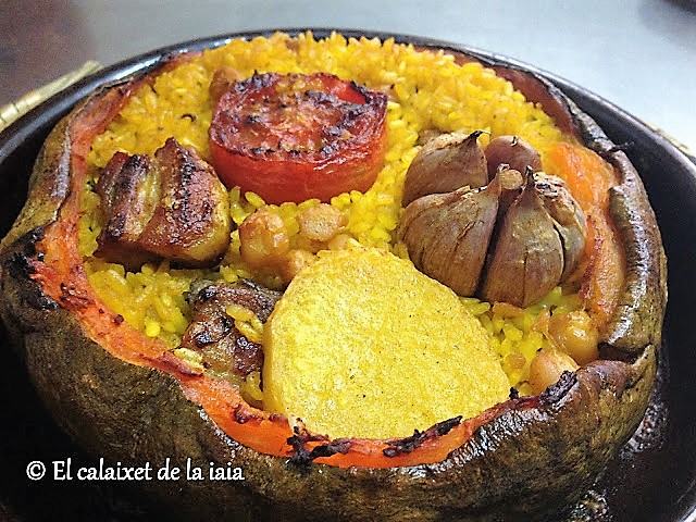 Hoy os traigo un arroz al horno distinto, ya que lo he cocido dentro de una calabaza, en lugar de cazuela y os aseguro que resulta un plato exquisito, pues la calabaza le da un sabor especial, pero no os preocupéis que, dulce, no queda, aunque con cierto sabor dulzón y delicioso.