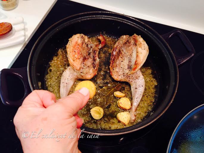 Vemos como va la perdiz probamos la sal del jugo y rectificamos si es necesario.