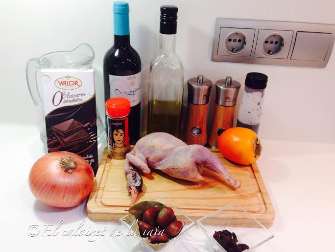 Perdiz al chocolate con salsa de caquis paso a paso.