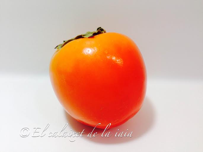 Los caquis, son una fruta habitual en mi tierra por éstas fechas, originarios de Japón y China. Aunque hay dos clases de caquis, el Persimón que cuando está verde tiene un color amarillo y cambia a color anaranjado y similar a un melocotón maduro cuando está en su punto adecuado y es muy difícil de cortar fino y manejar, porque se rompe por su jugosidad, y el caqui Classic que es de color rojo y suele comerse con cuchara ya que su pulpa es gelatinosa, como mermelada.