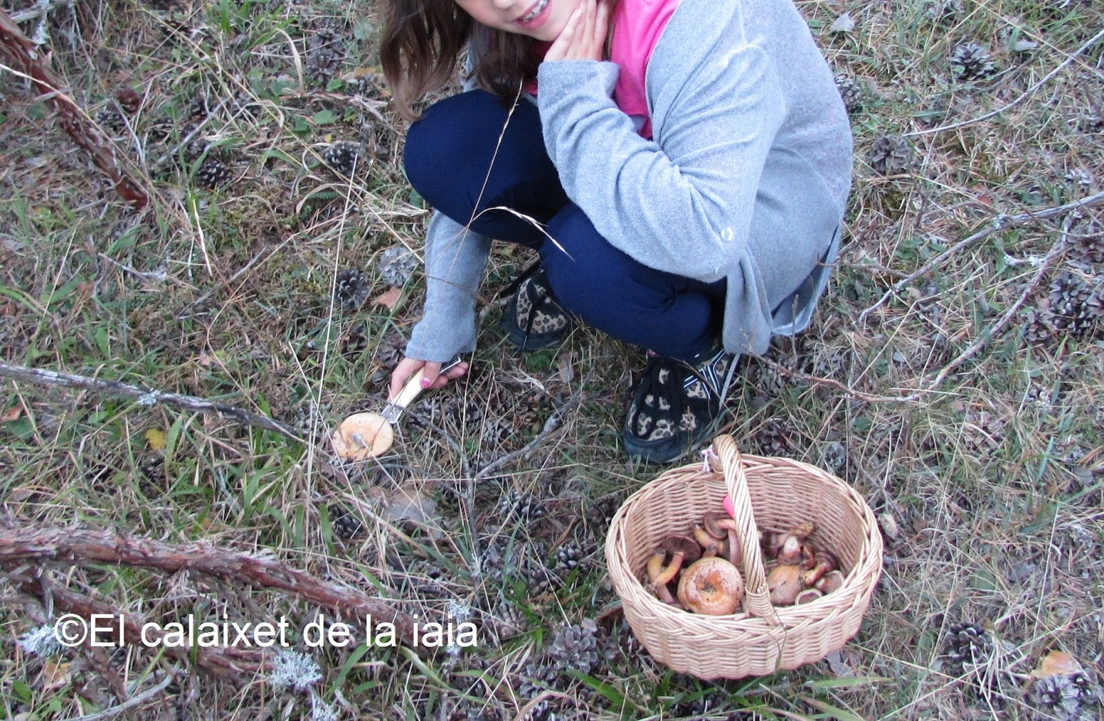 Radar que parece haber heredado mi nieta mayor, los rebollones que veis en la cestita los encontró ella y no cesaba a tocar el pito para que viniera el iaio con la navaja a cortarlos, ya que como es lógico, a ella no le dejamos llevar.