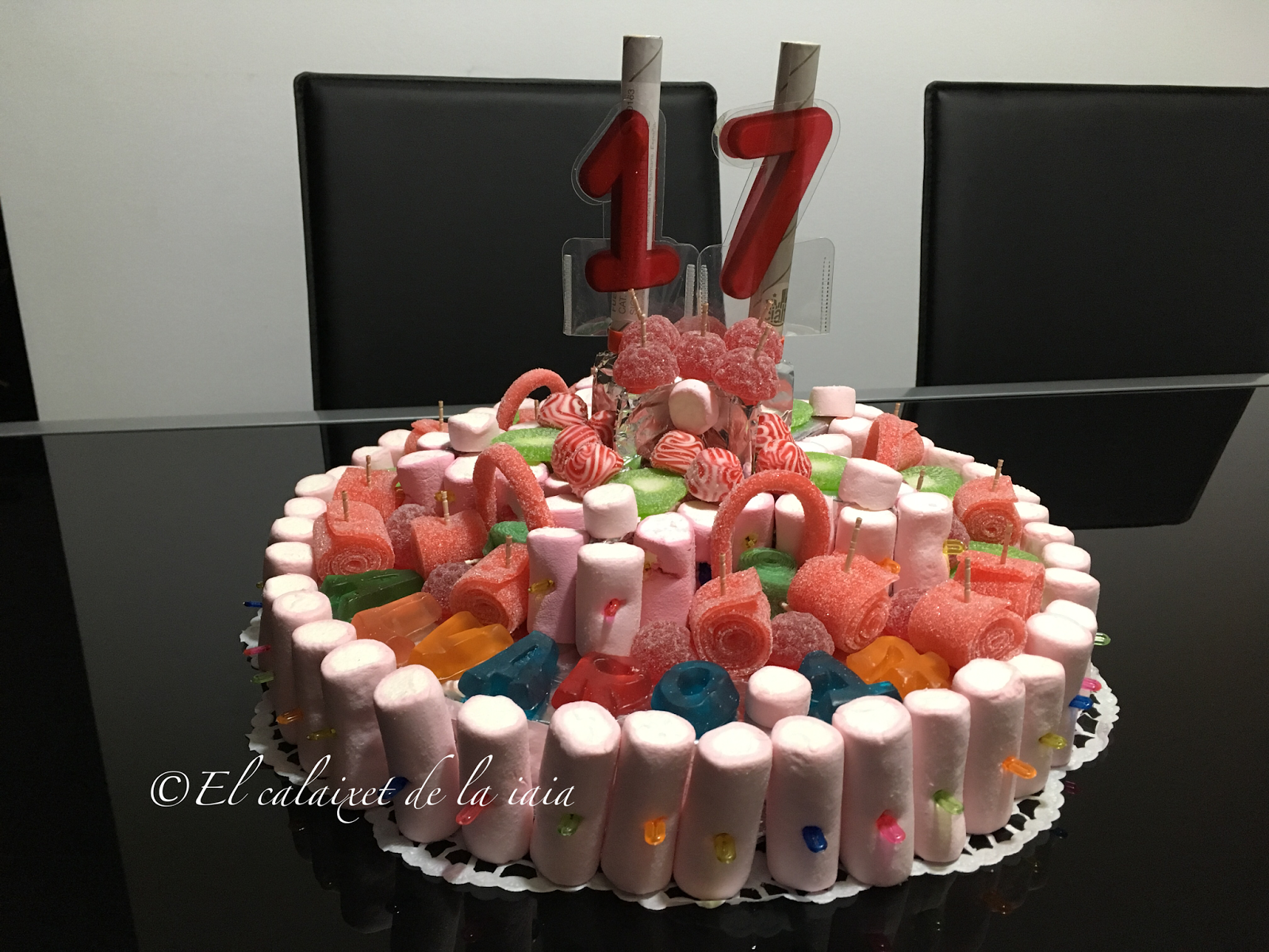 Para el cumpleaños de mi ahijado, pensé hacerle yo la tarta. Tarea difícil y complicada porque a mi querido sobri no le gustan las tartas, de bizcocho, ni de galletas, ni defrutas ni de mousse, ni el chocolate ni… arggggggggg ¿y de que le hago la tarta a mi chicooooo? pues al fnal y con el tiempo encima, decidí hacérsela de chuches, que las chuches le encantan!