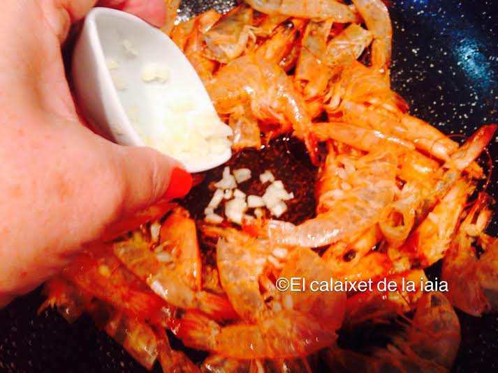Lo mismo de que uséis gambas que langostinos o gambones, éso si, os aconsejo que no los compréis pelados porque el ahorro es considerable y no cuestan nada de pelar, aparte de que con las pieles y las cabezas, haremos un caldito que le va ideal.