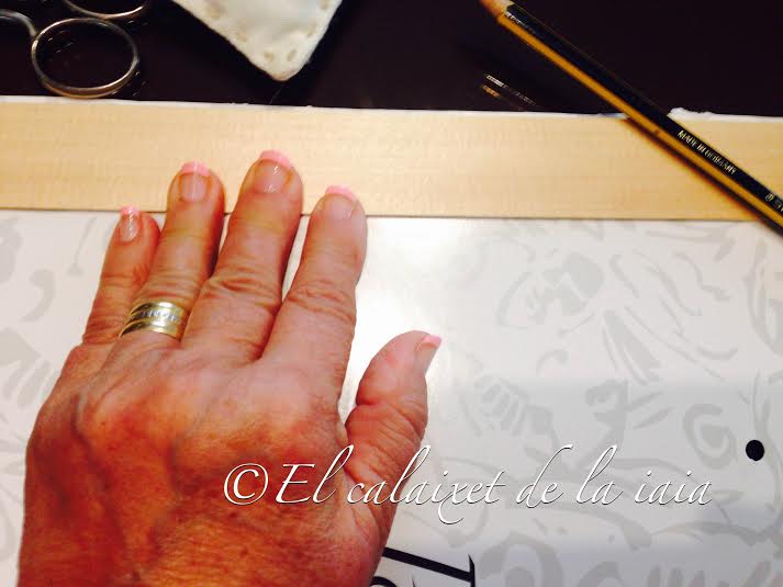 Situamos el patrón sobre los trozo de telas y marcamos con un «guix», tiza de modista o jaboncillo de sastre.