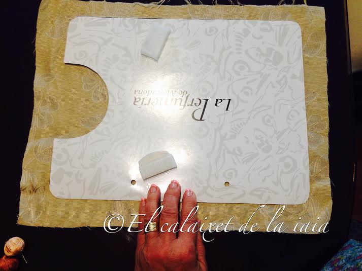 Una vez cortadas las tres telas sujetamos bien con alfileres y pasamos un hilván en forma de cruz y otro por los bordes para que no se muevan las telas mientras las manipulamos