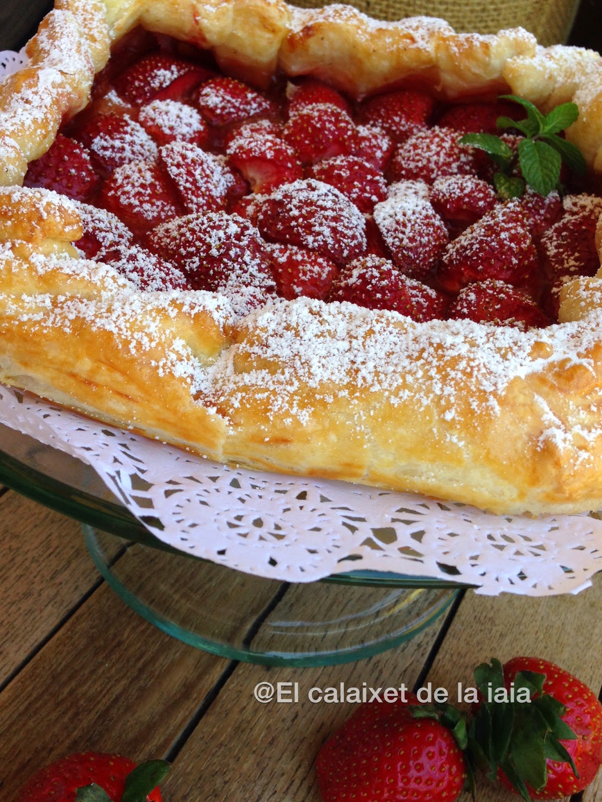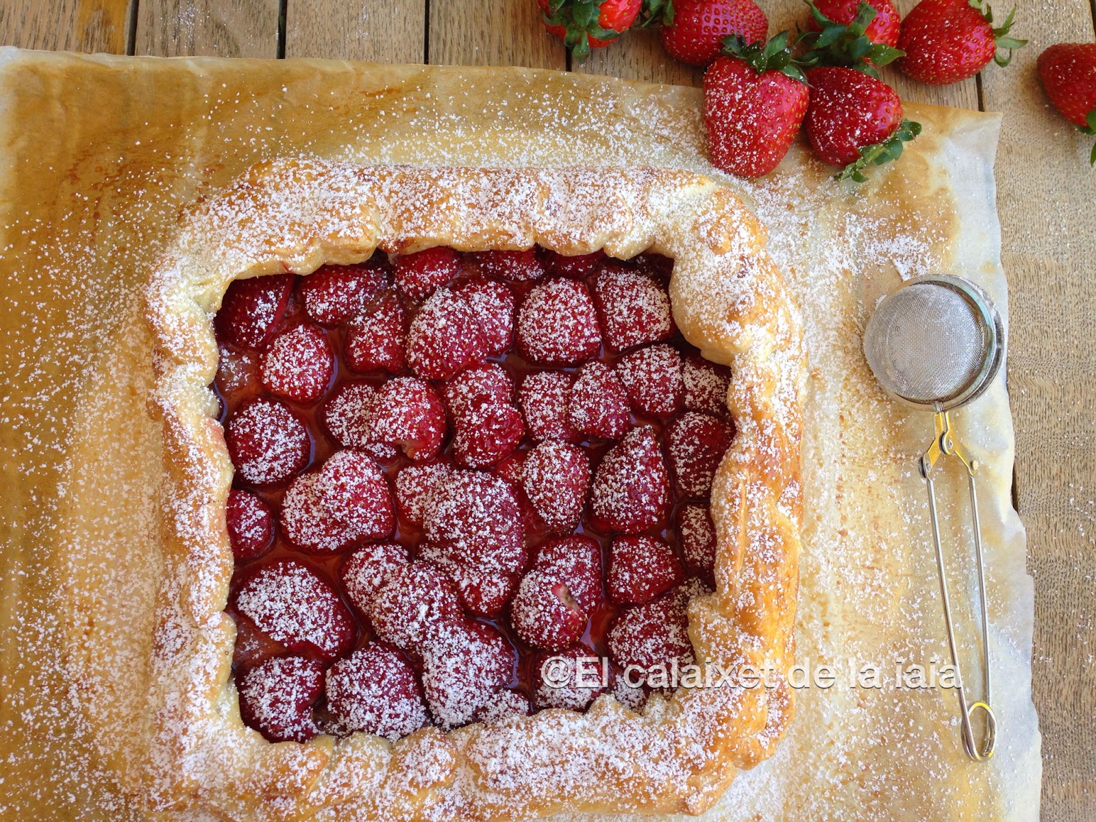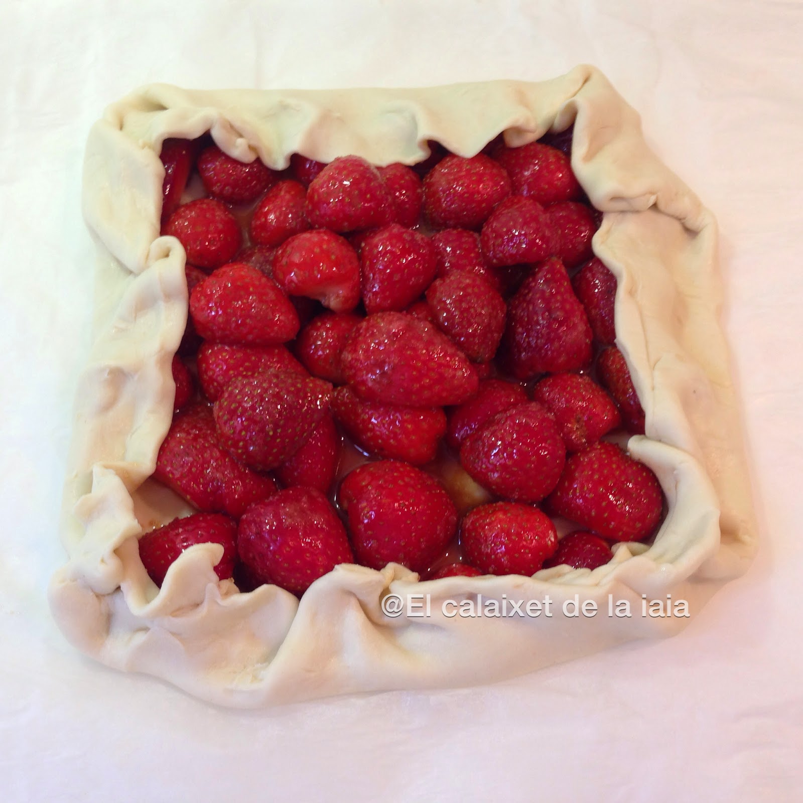 En el súper tenían los fresones a 1€ el k. porque ya comenzaban a estar un poco blandos, ahora que comienzan a estar dulces, así que utilicé los mejores para una macedonia, otros para un batido, para una naranja preparada con fresones, y el resto para ésta galette y todooo con un euro de fresones.