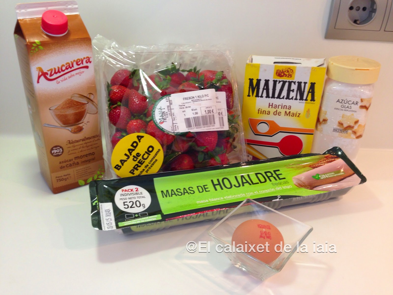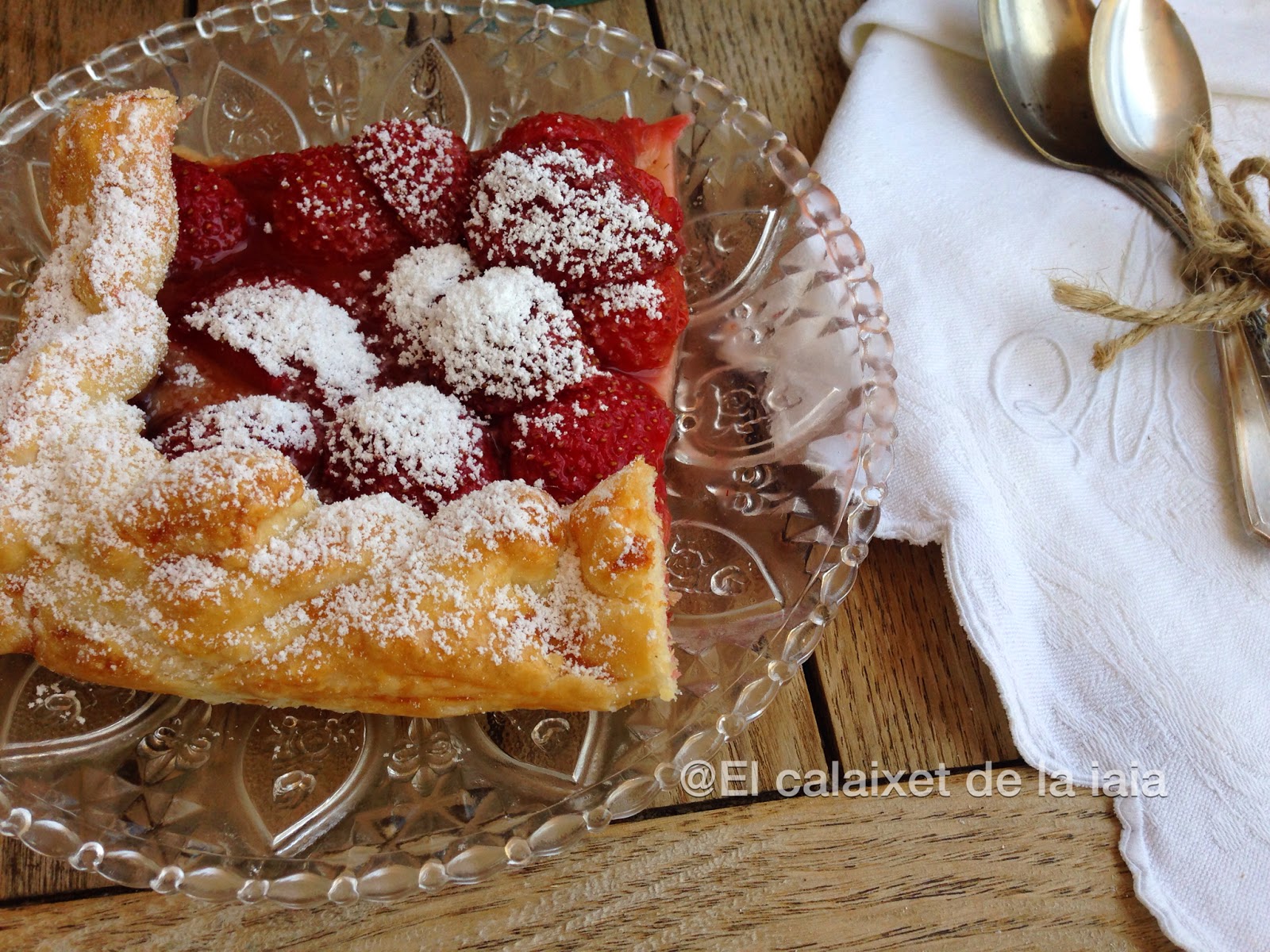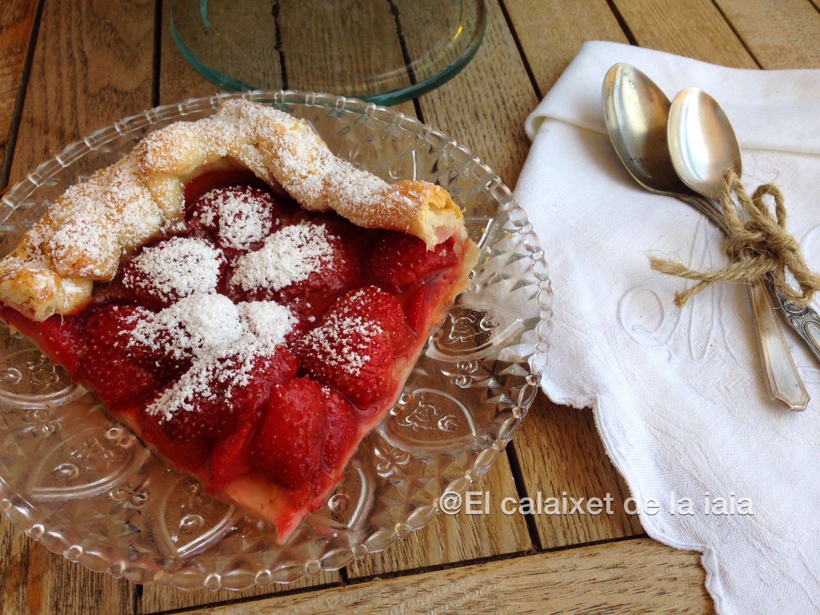 En el súper tenían los fresones a 1€ el k. porque ya comenzaban a estar un poco blandos, ahora que comienzan a estar dulces, así que utilicé los mejores para una macedonia, otros para un batido, para una naranja preparada con fresones, y el resto para ésta galette y todooo con un euro de fresones.