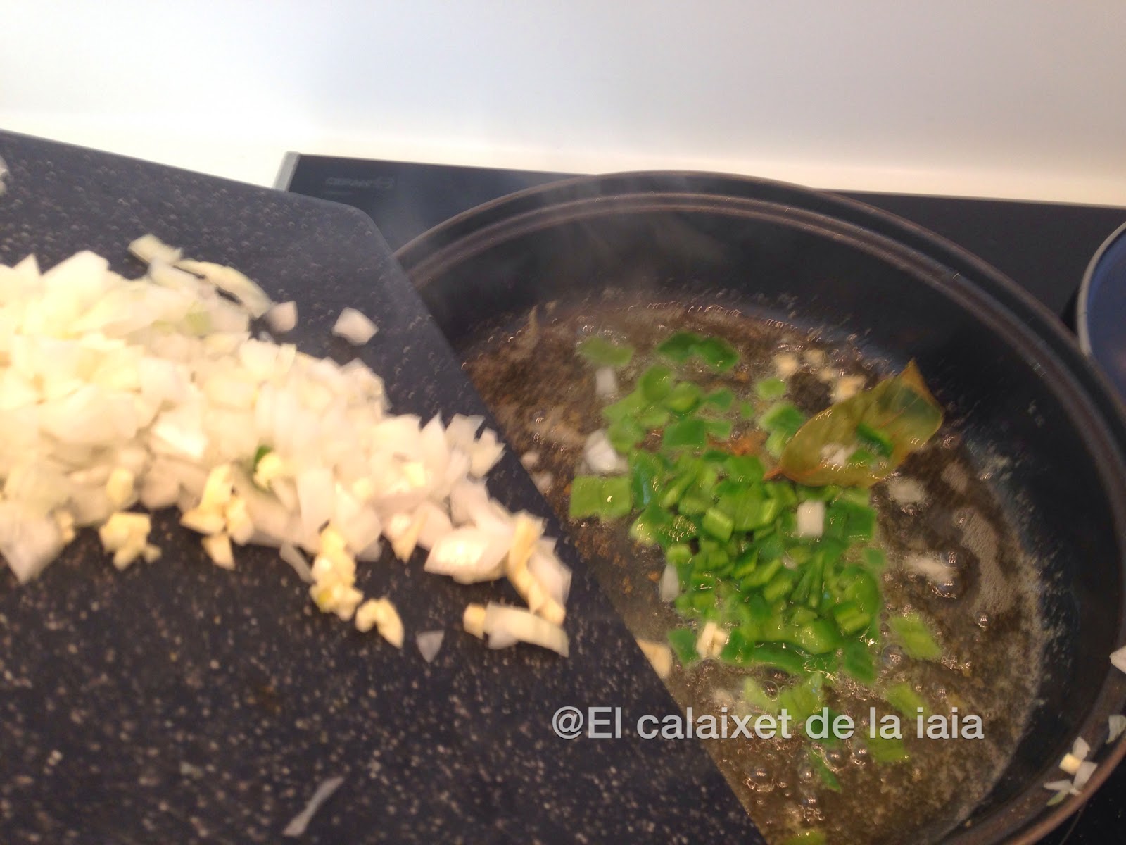 y ponemos a pochar en el mismo aceite junto al laurel enjuagado