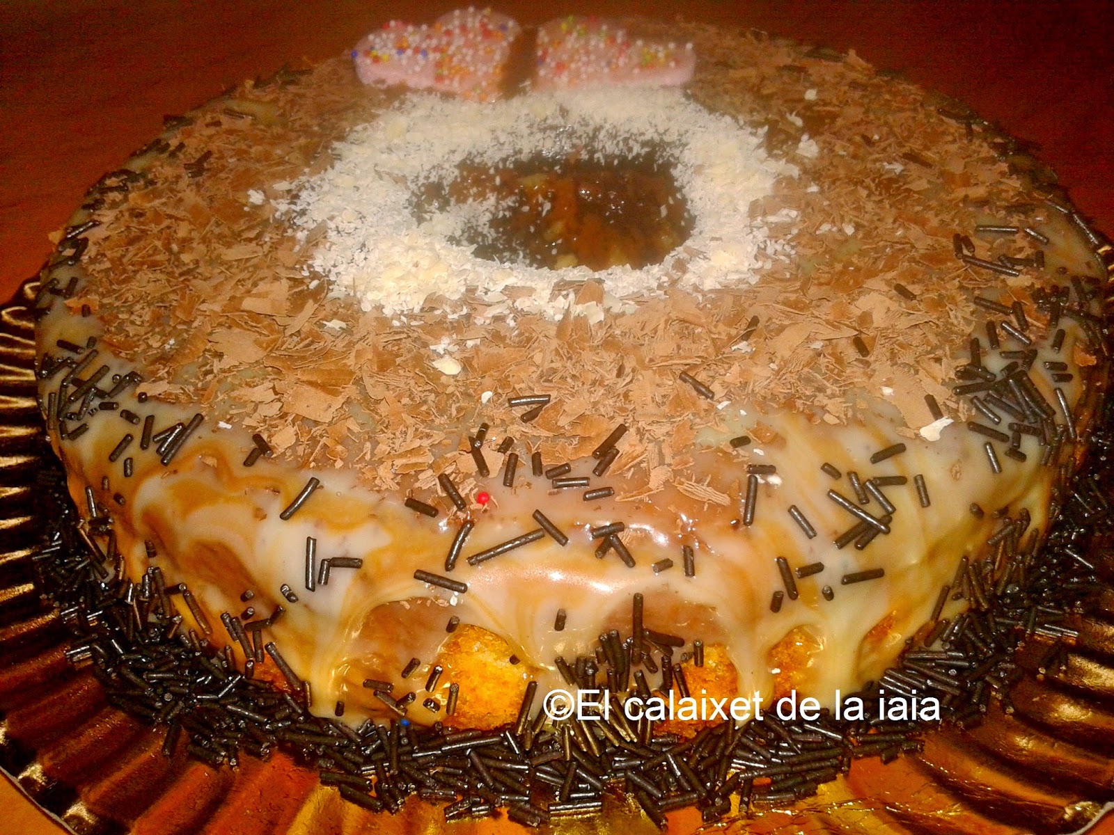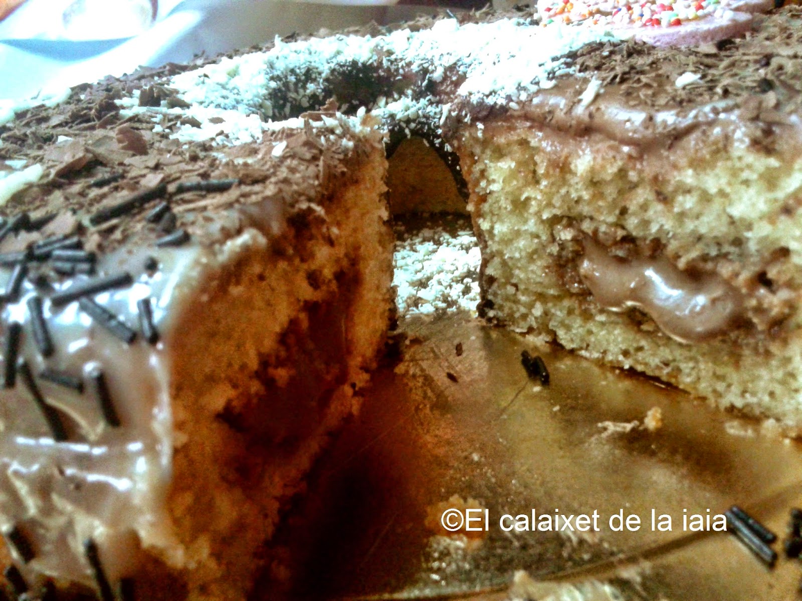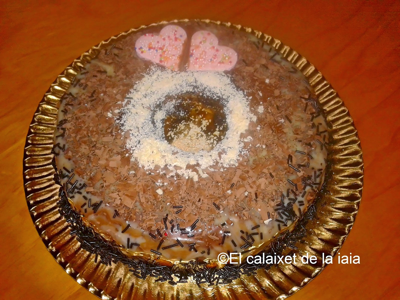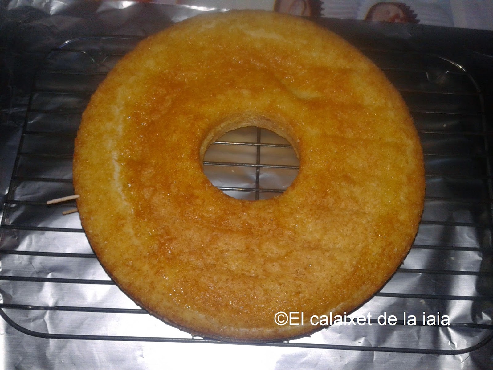 con ayuda de un tenedor vaciamos el disco de bajo haciendo un canal, el bizcocho que quitemos queda riquísimo con unas natillas por ejemplo….