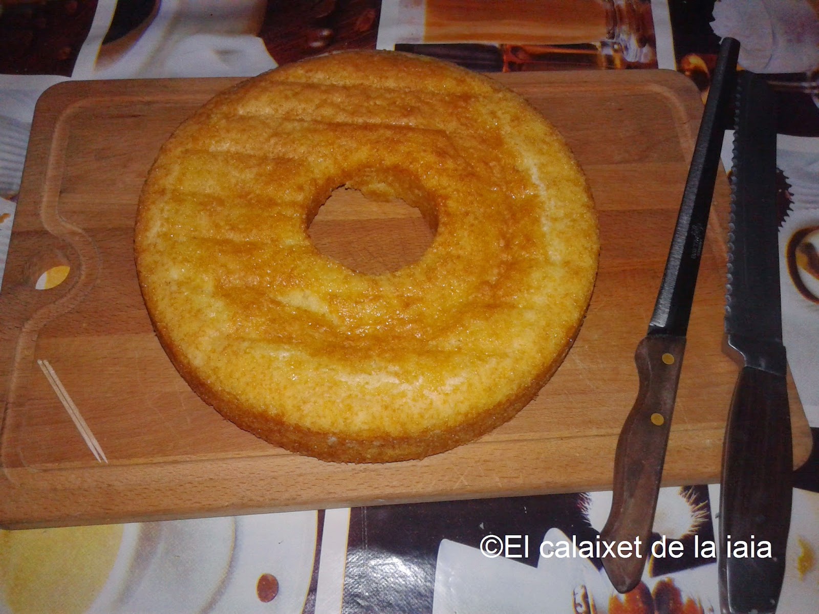 Partimos el bizcocho por la mitad con mucho cuidado de no romperlo