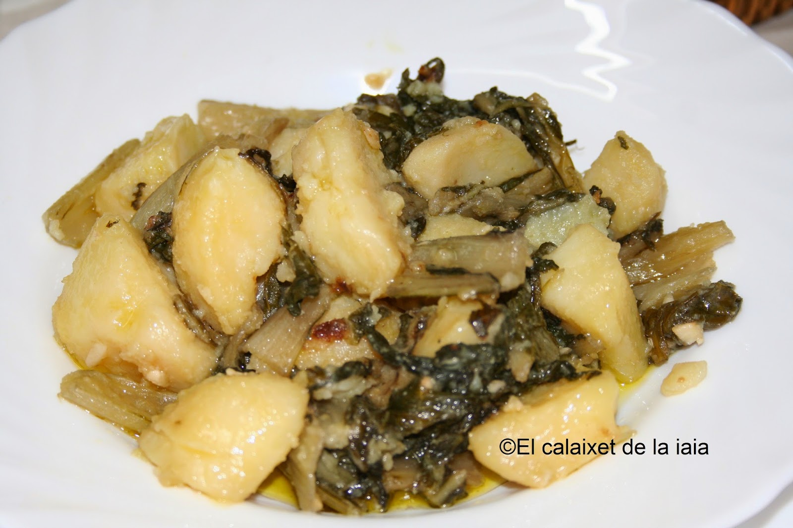 Cena humilde, de pueblo y en el pueblo. Una receta antigua que preparaba muy a menudo mi suegra con unos ingredientes muy básicos, sin agua y con la paciencia del fuego lento, a las brasas. Mucho sabían antiguamente de aprovechar las vitaminas y minerales, al no ser hervidas ni escaldadas, conservan todas las propiedades.
