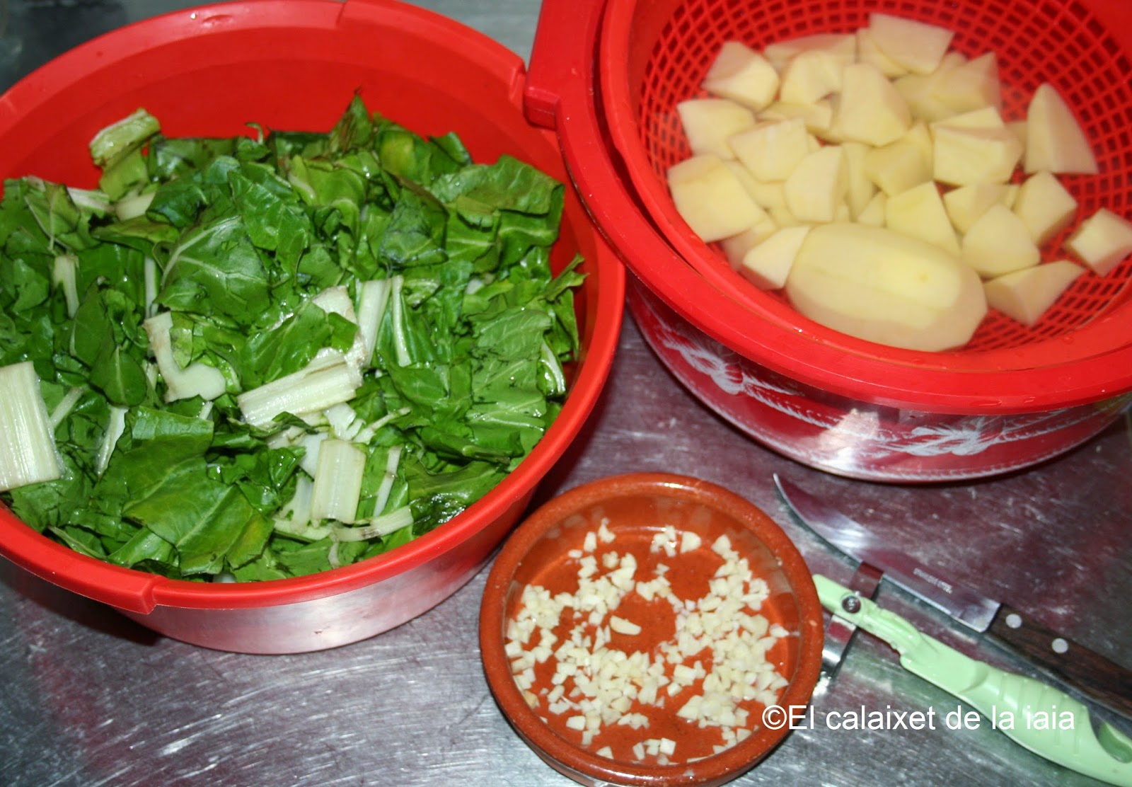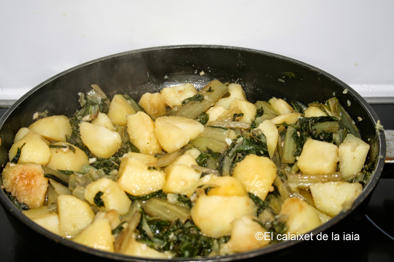 y tapamos porque éste plato se cocina con el propio vapor de las acelgas, a fuego lento, sin prisa y con cariño, a falta de perol de hierro y brasas para cocerlo