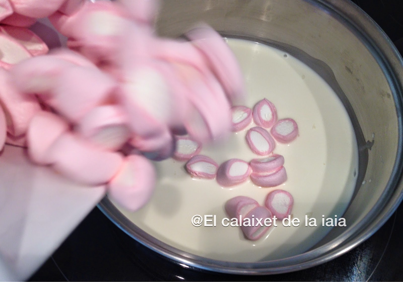 incorporamos las nubes que yo he cortado a trocitos para que se derritan con mas facilidad, pero no es imprescindible