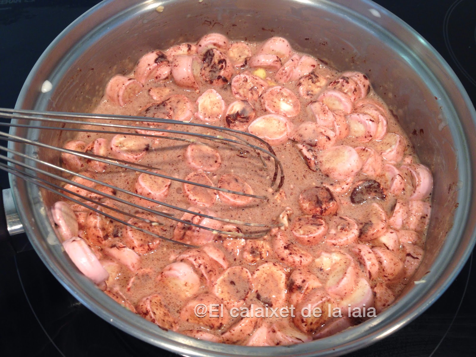A fuego medio-bajo y sin dejar de remover, mientras mezclamos veremos como se derriten los ingredientes