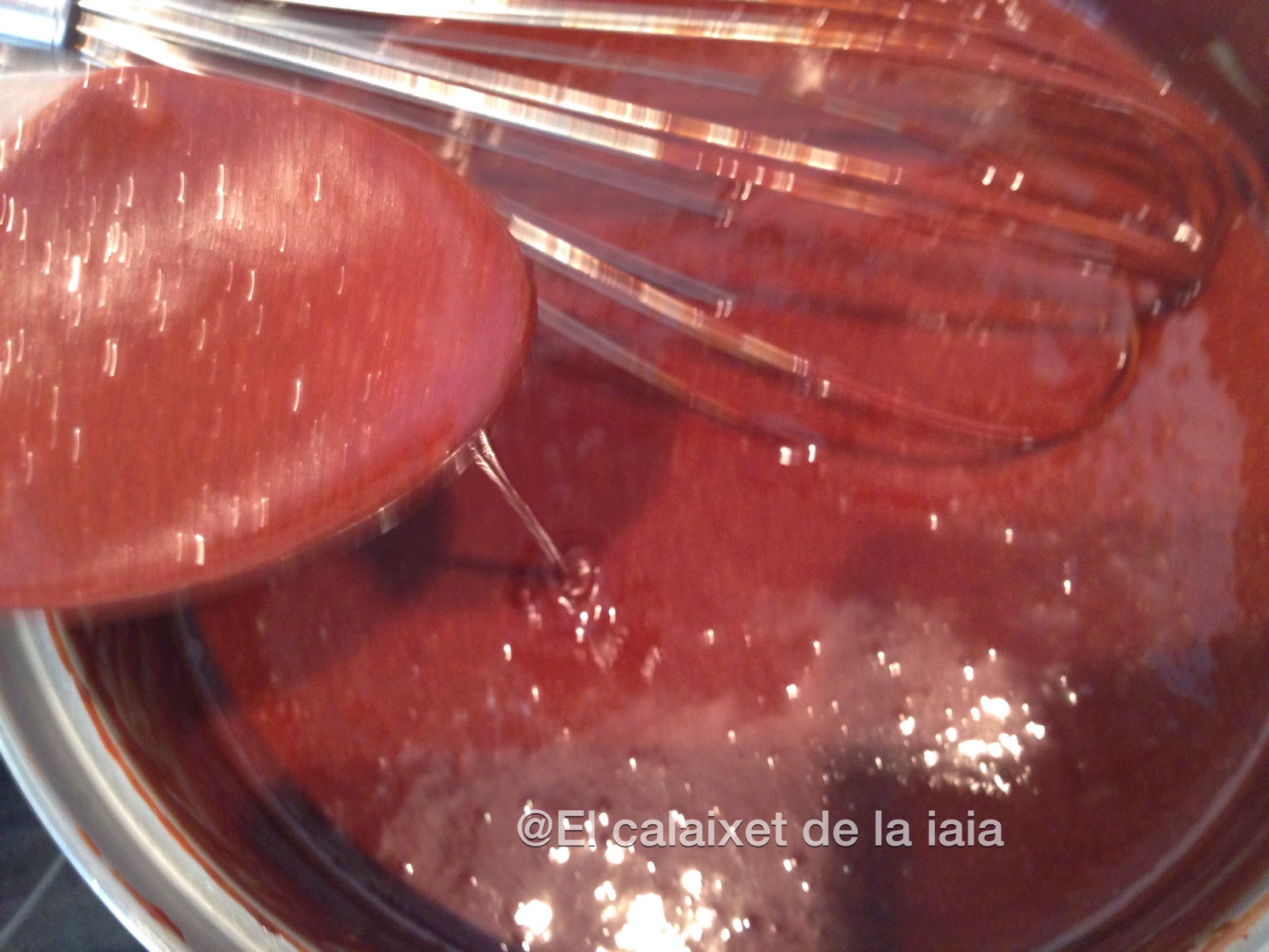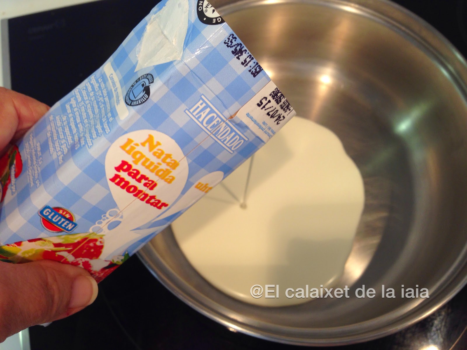 retiramos del fuego en cuanto dejemos de ver trozos de nubes y con el calor de la masa se acabarán de deshacer, dejamos templar y al congelador 5 minutos