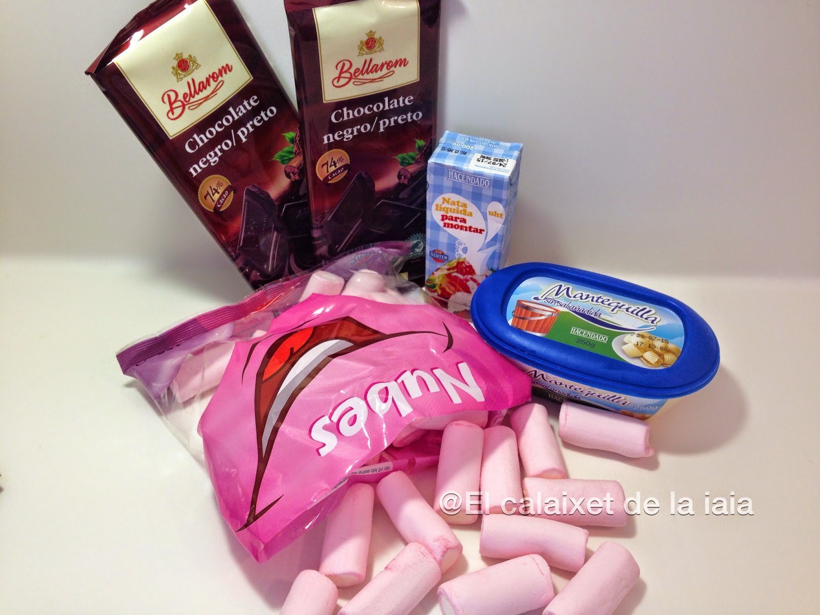 también llamadas esponjitas o malvaviscos y que junto a unas tabletas de chocolate puro, van a ser los ingredientes de mi;